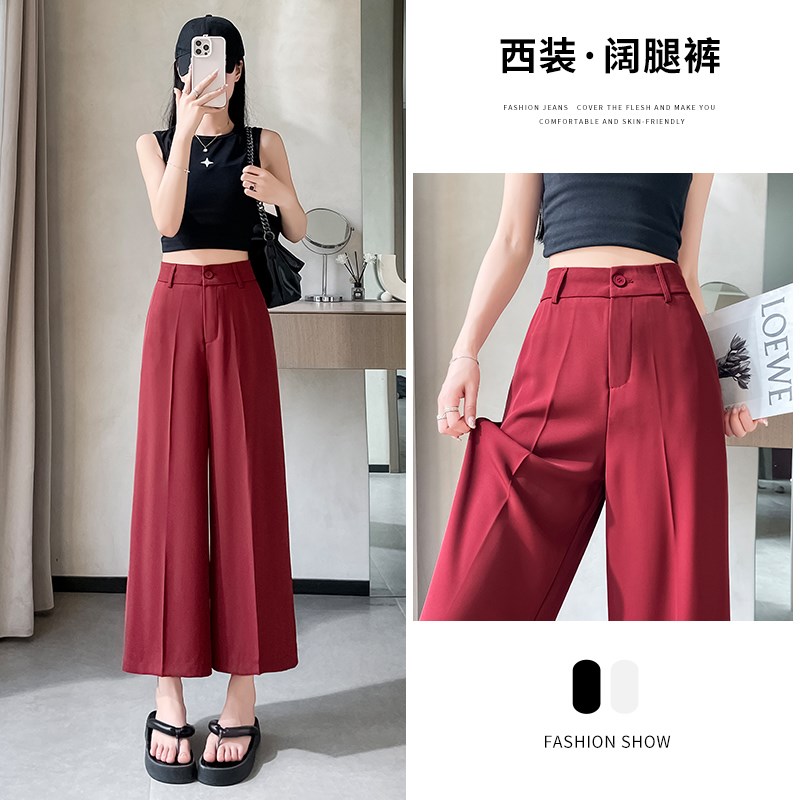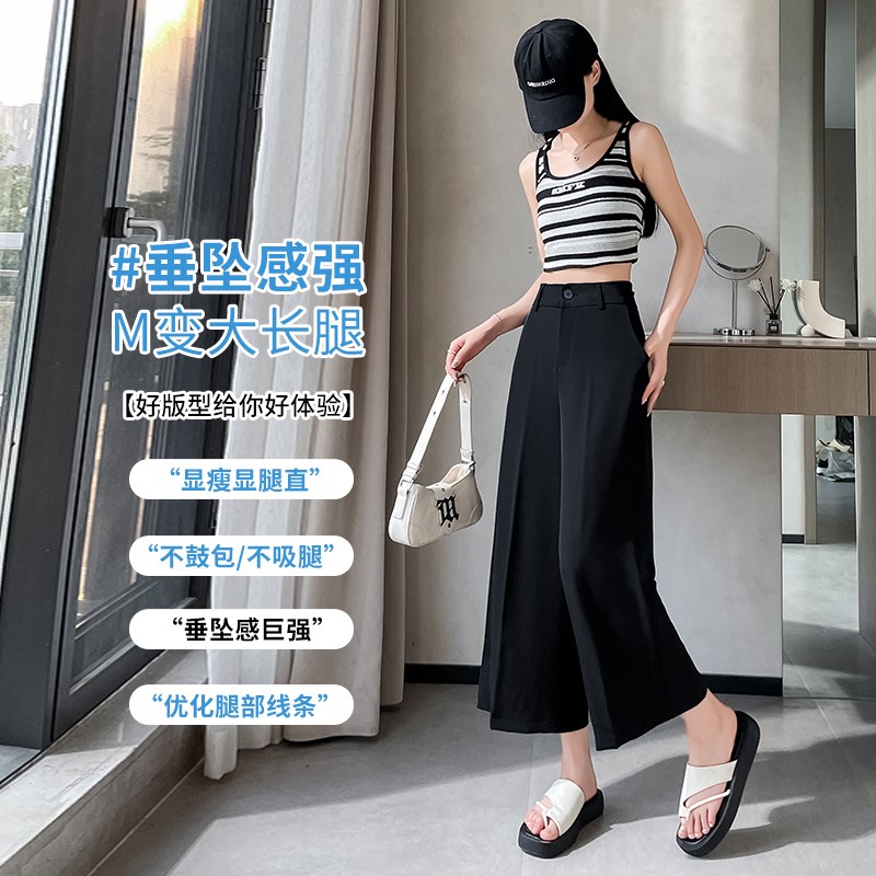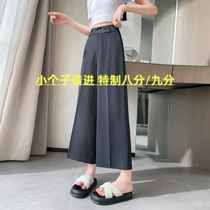 冰丝八分阔腿裤女夏季薄款高腰垂感150小个子直筒宽松休闲西装裤