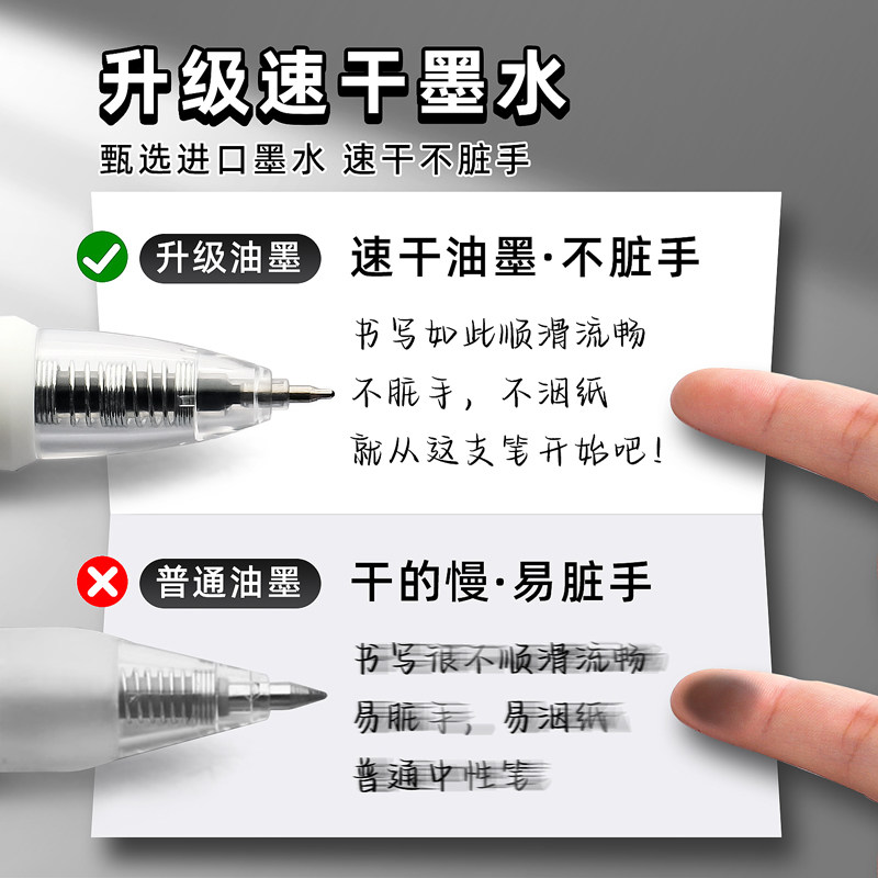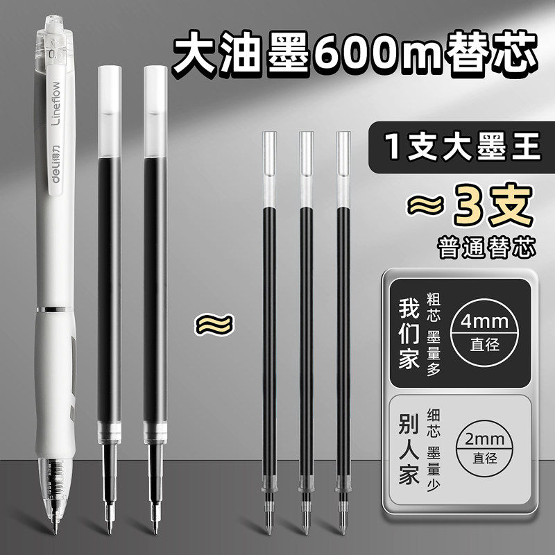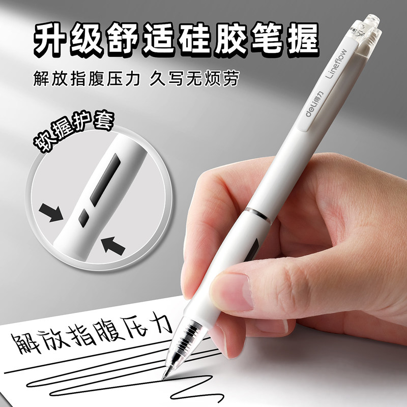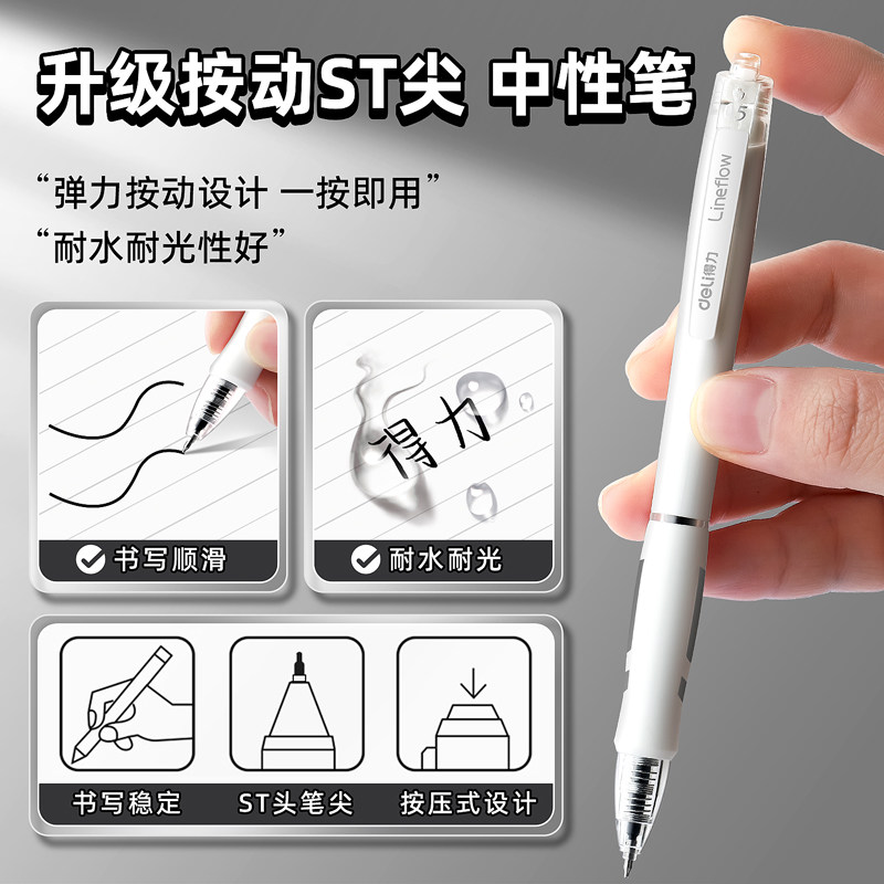 得力ST中性笔速干考试专用按动笔中考高考大容量st笔头刷题笔0.5mm黑色子弹头高颜值可替换芯臻顺滑签字笔尖