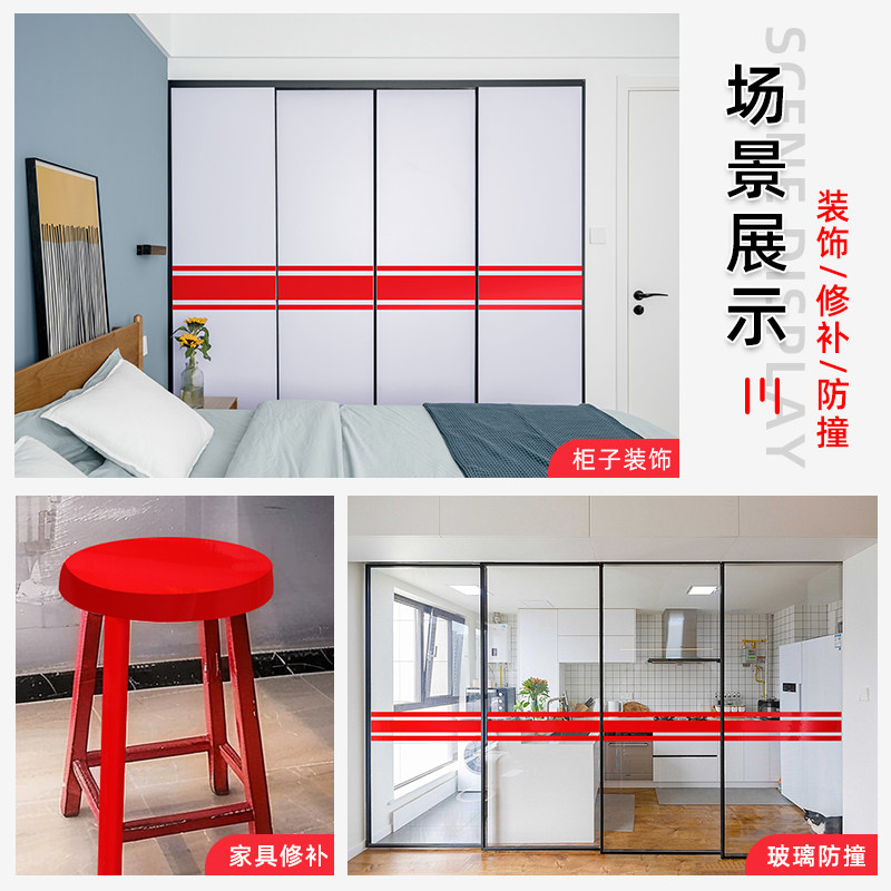 红色胶带装饰线条玻璃防撞提示腰线贴纸玻璃门广告贴条边框装饰条