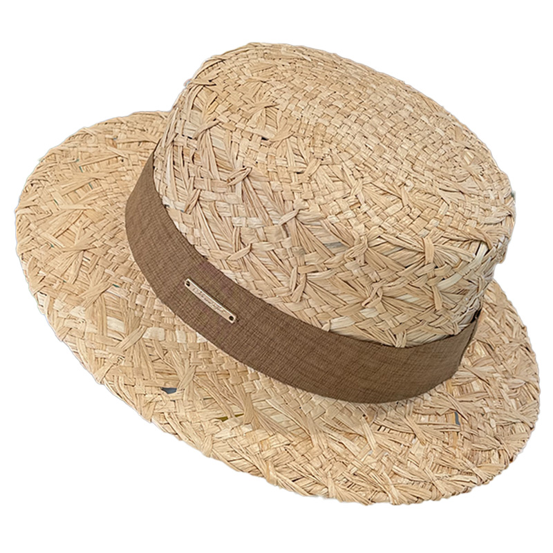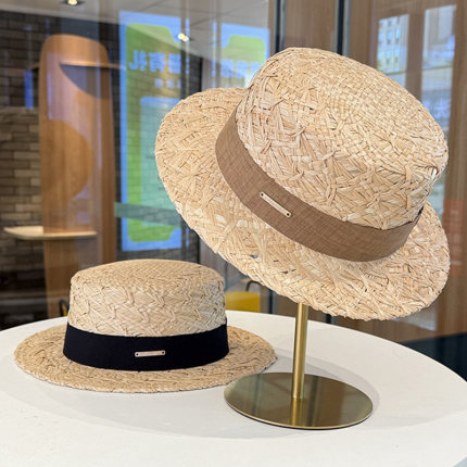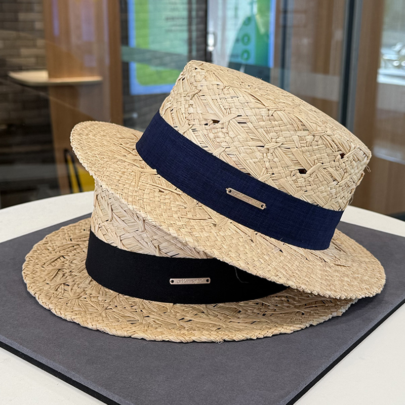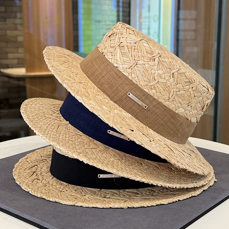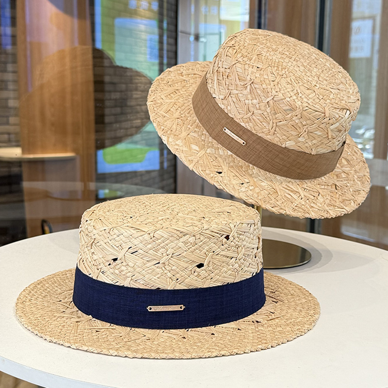 法式复古平顶草帽女2025夏季新款气质百搭拉菲草编透气防晒遮阳帽