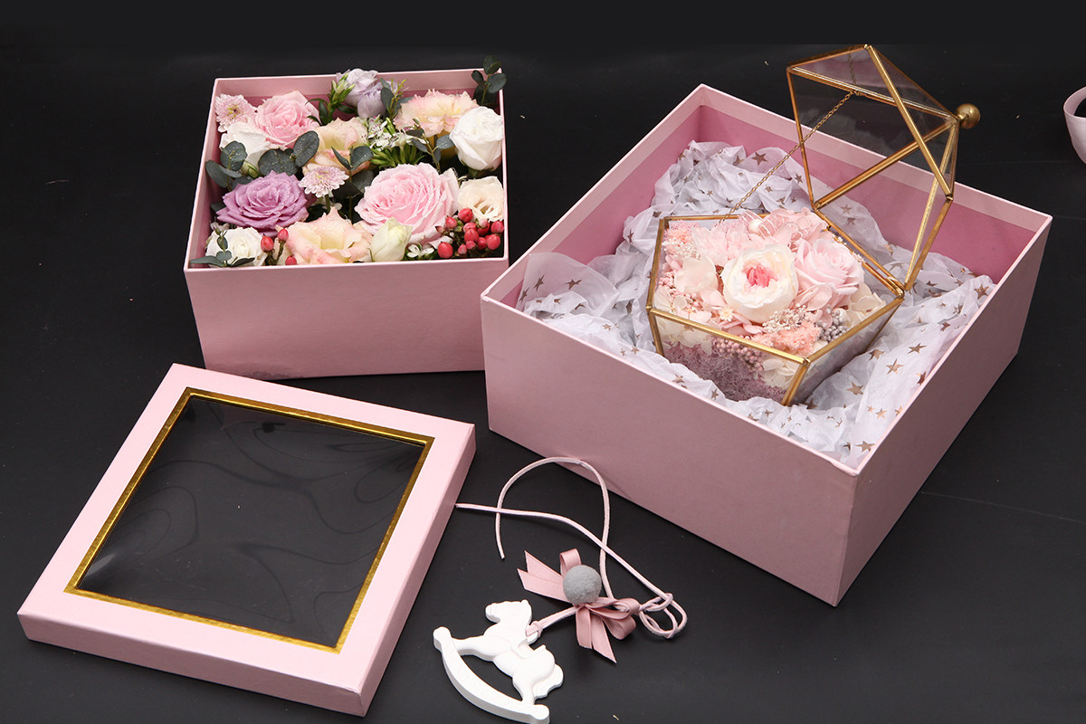 ins风 创意正方形礼盒大小号七夕情人节透明开窗鲜花盒空盒包装盒