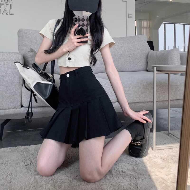 2024春夏新款显瘦黑色高腰短裙百搭大码百褶裙包臀a字时尚半身裙