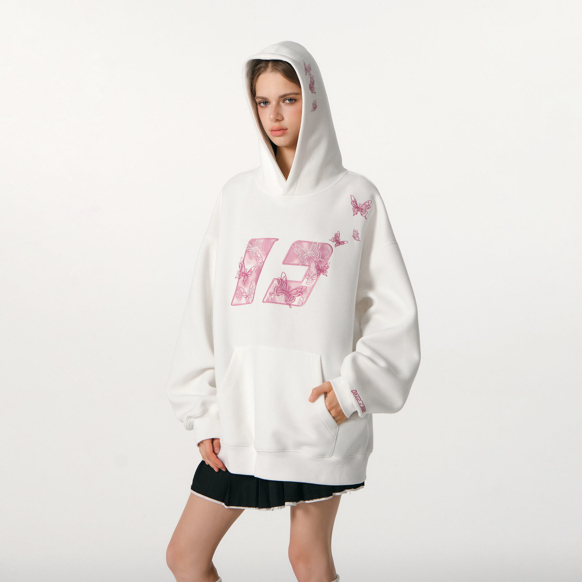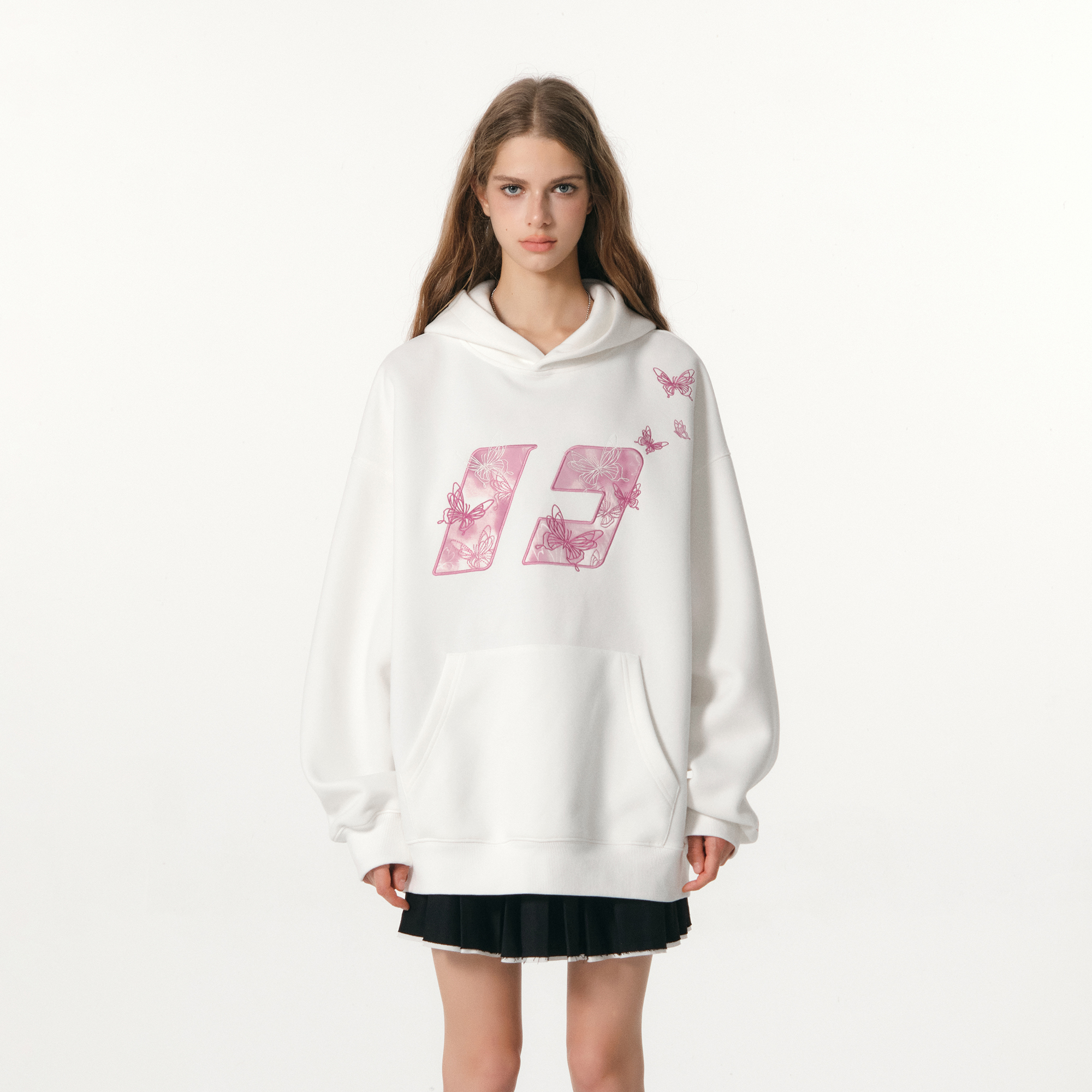 FORNINES蝴蝶刺绣卫衣男款2025秋冬国潮重磅连帽衫宽松外套女上衣