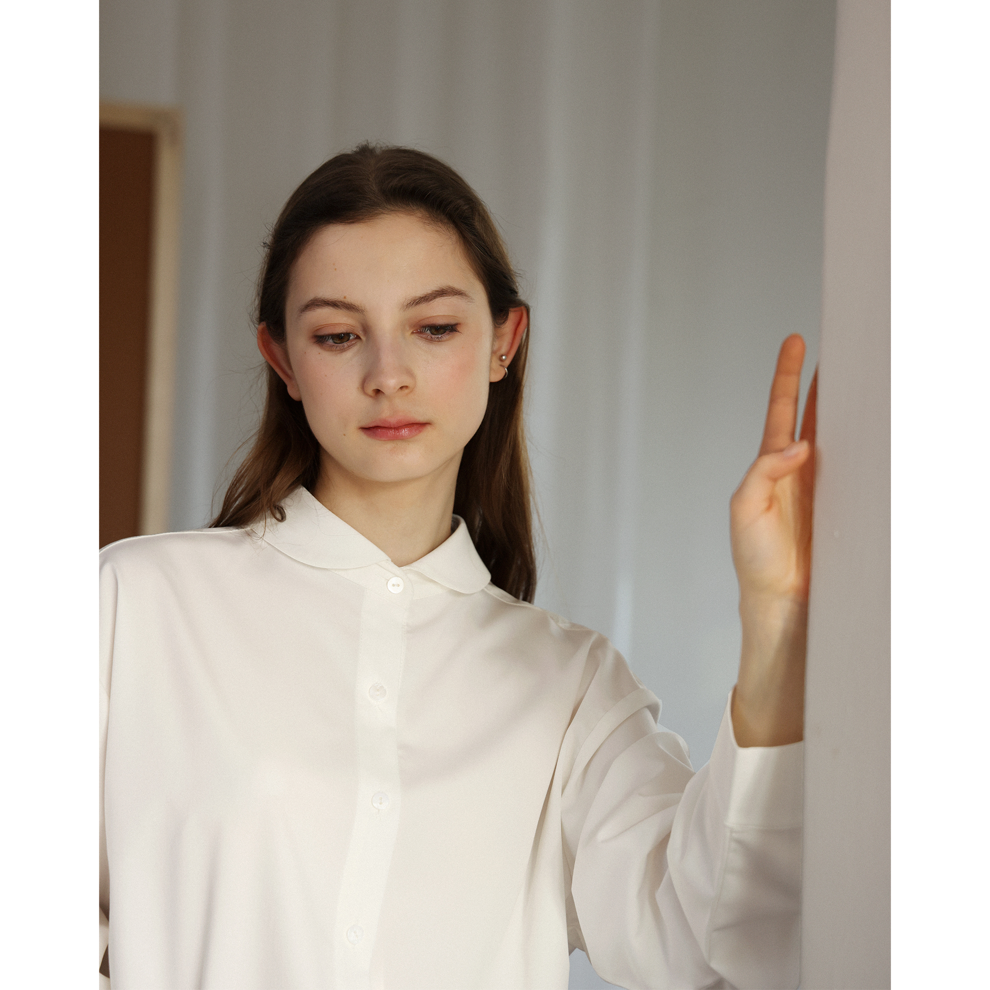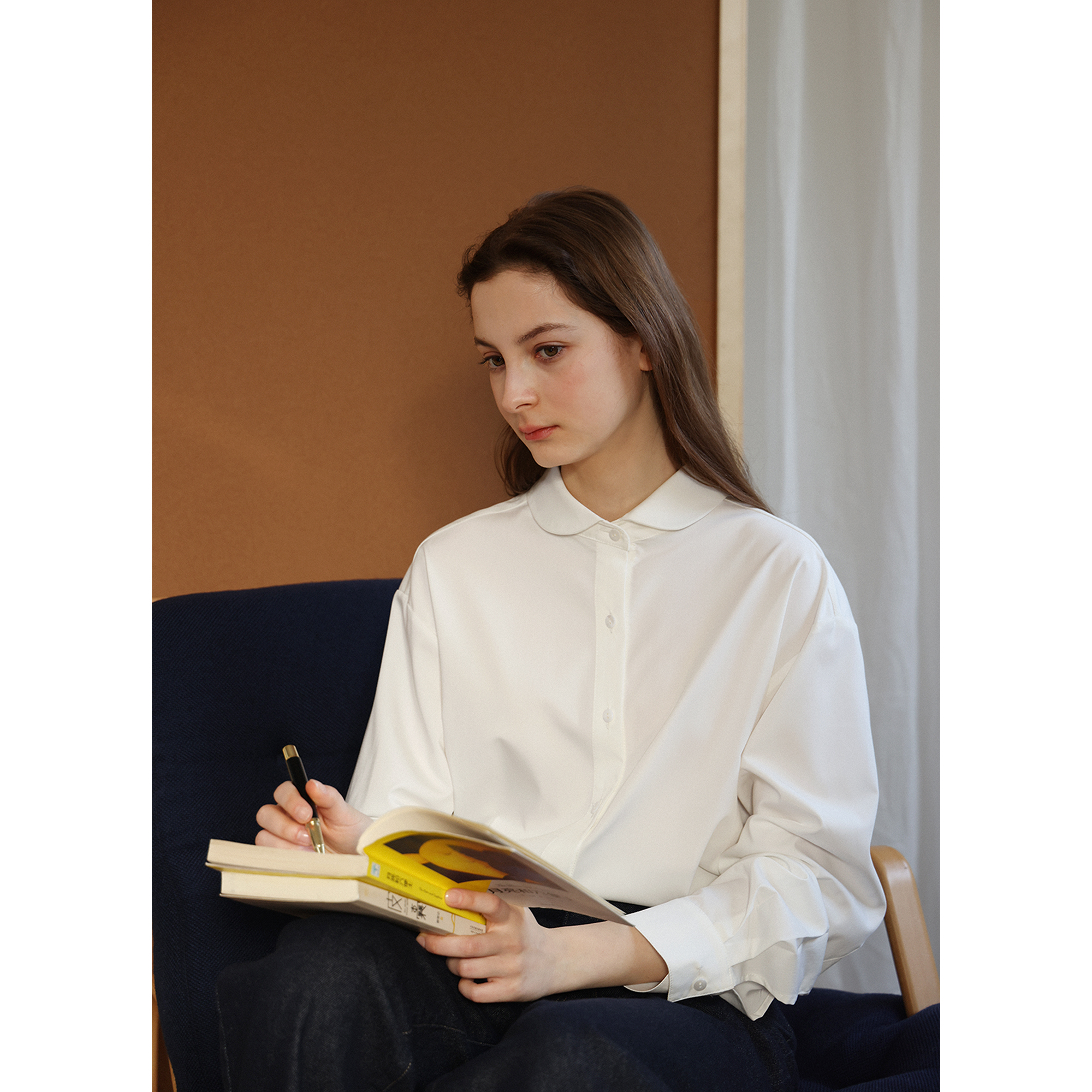 徐莫西 好打理白色娃娃领百搭宽松长袖衬衫女秋新款叠穿通勤上衣