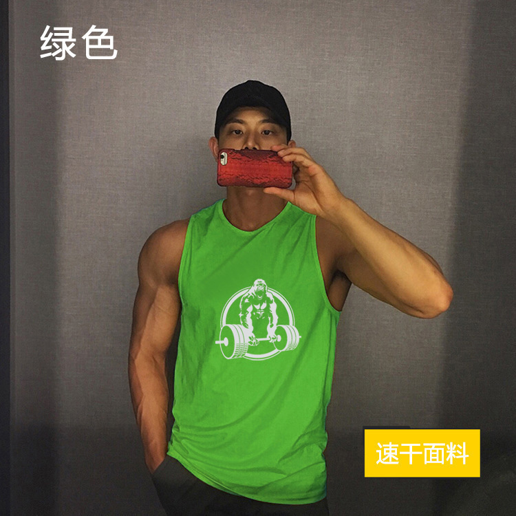 疯狂肌肉透气速干背心健身男士 无袖坎肩t恤宽松衣服训练运动上衣