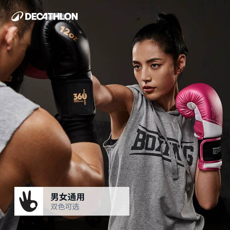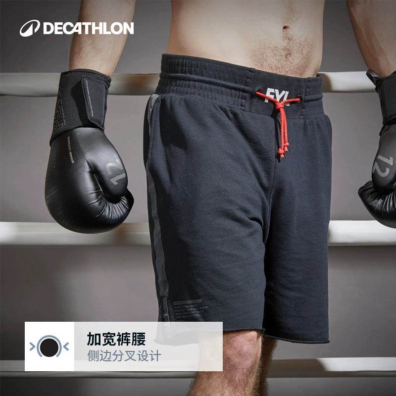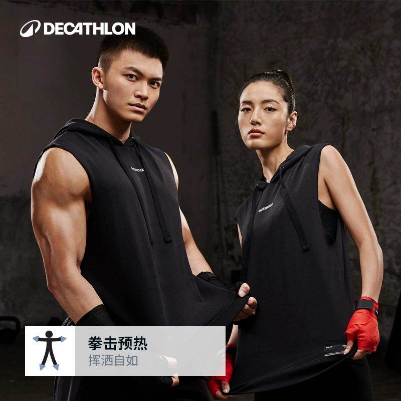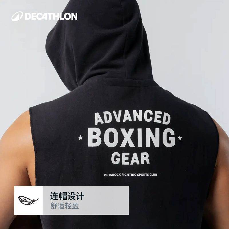 迪卡侬拳击训练背心无袖连帽衫短裤男女黑排汗透气健身衣ENR4
