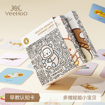 英氏宝宝认知卡片婴幼儿童一岁早教启蒙动物果蔬看图识物彩色卡片
