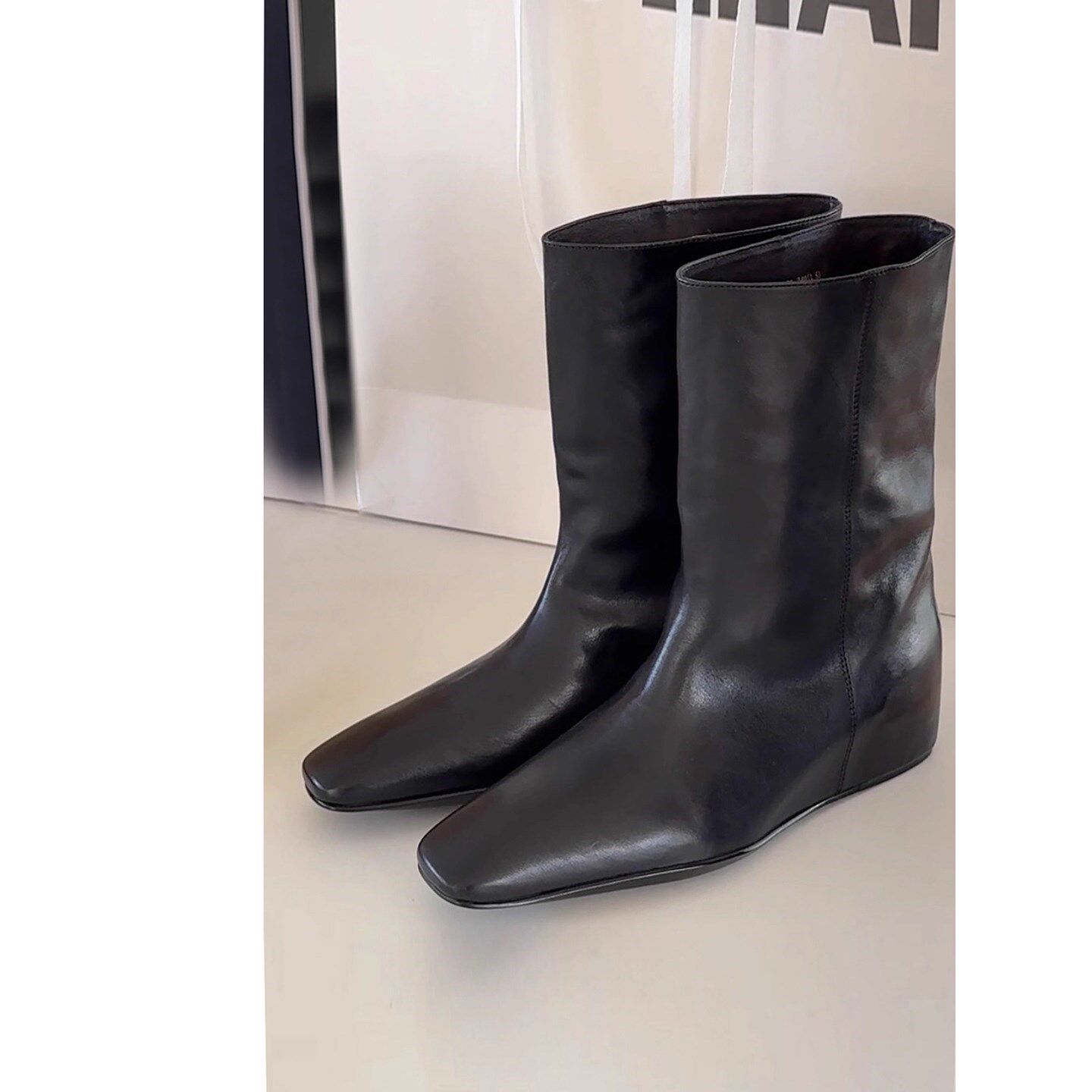 欧洲站方头短靴女2025秋季新款真皮百搭时装短筒靴内增高马丁靴子