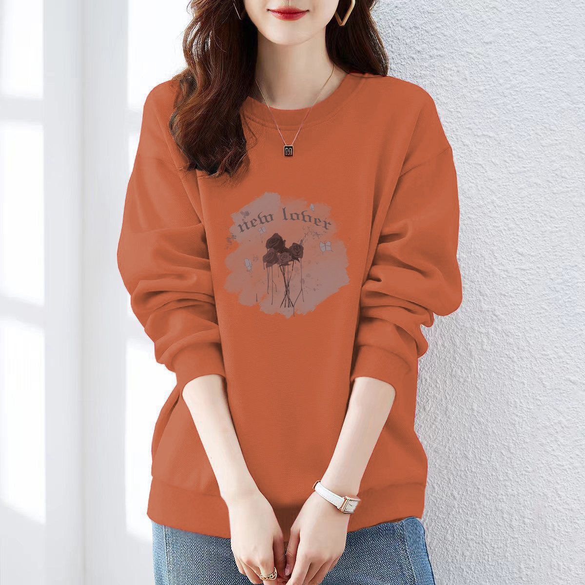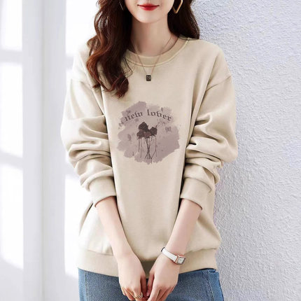 高级感杏色纯棉卫衣女2024新款春秋内搭时尚韩版宽松显瘦长袖上衣