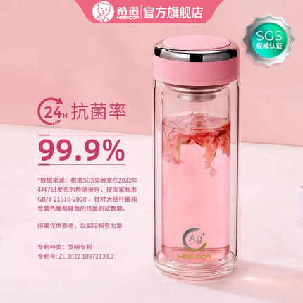希诺双层玻璃杯女士抗菌隔热泡茶杯花茶杯高档便携家用水杯高颜值