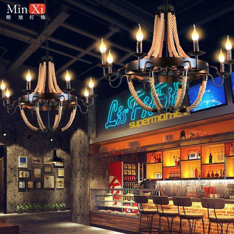 绳工业风483复古怀旧麻个吊灯创意厅民宿烧烤店铺商用餐灯美式性