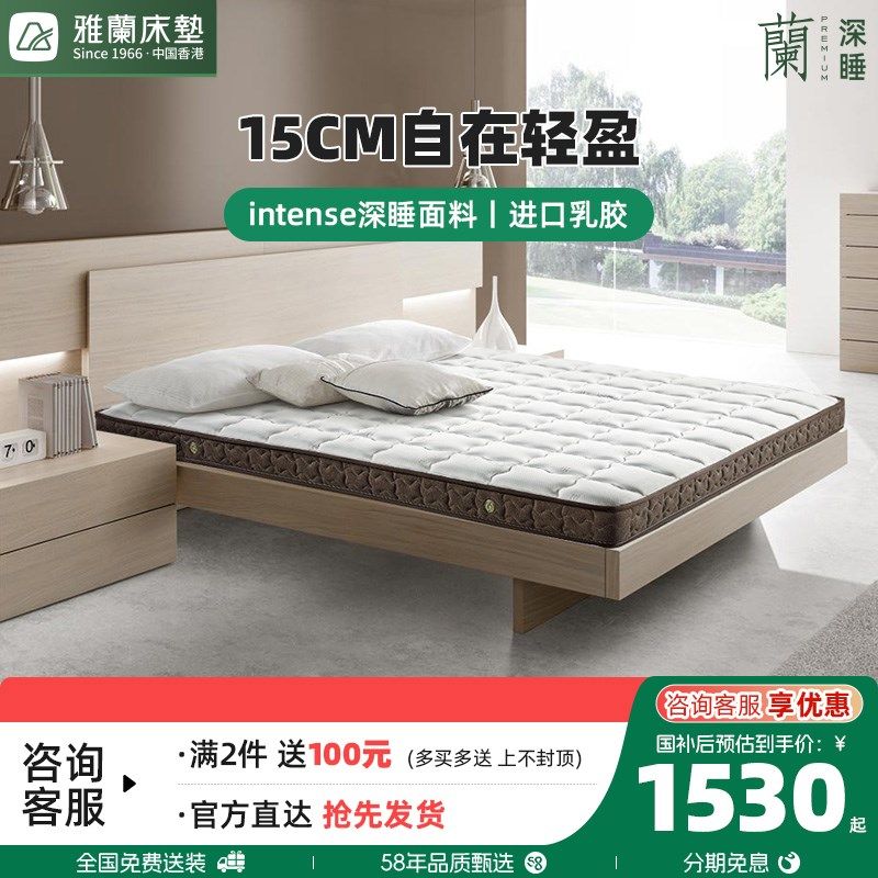 雅兰床垫15CM厚天然乳胶席梦思1.5m双人家用护脊弹簧薄垫深睡轻盈