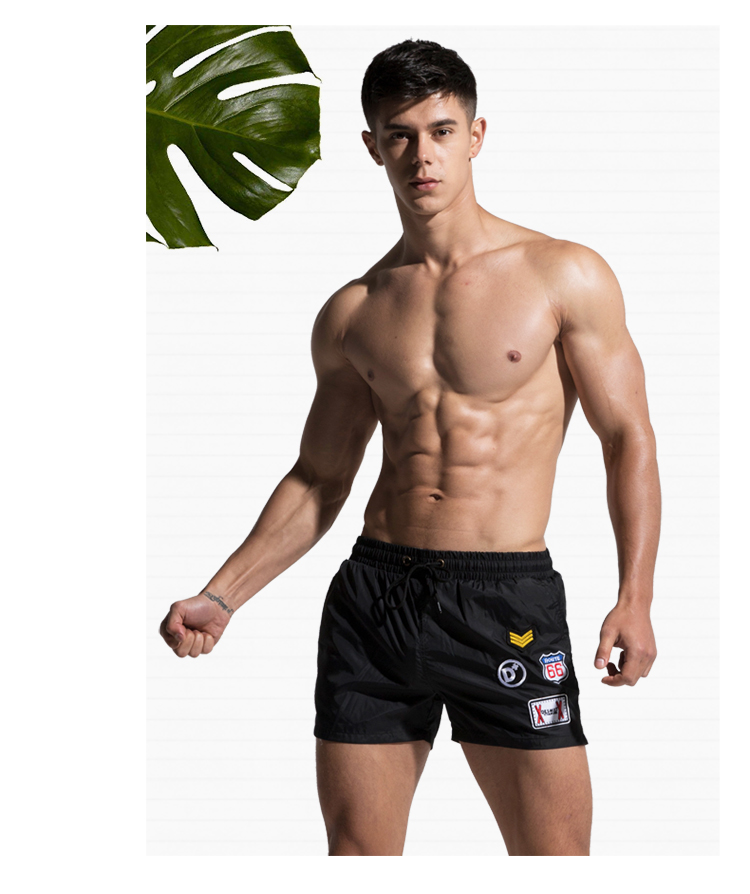 desmiit轻薄速干男沙滩短裤宽松泳裤个性绣标休闲跑步运动三分裤