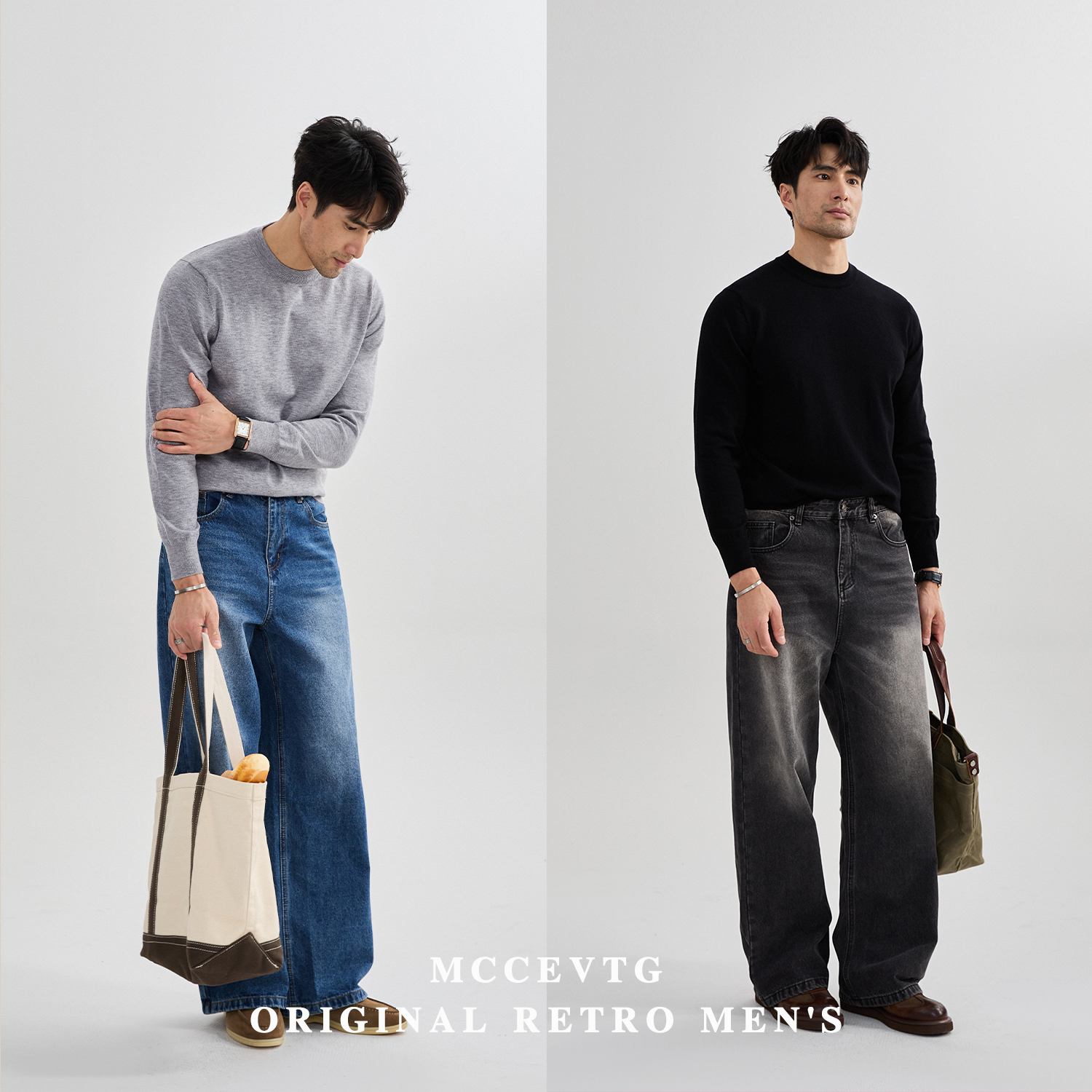 MCCEVTG意式休闲 羊毛混纺纯色毛衣男长袖加厚休闲针织衫上衣秋冬
