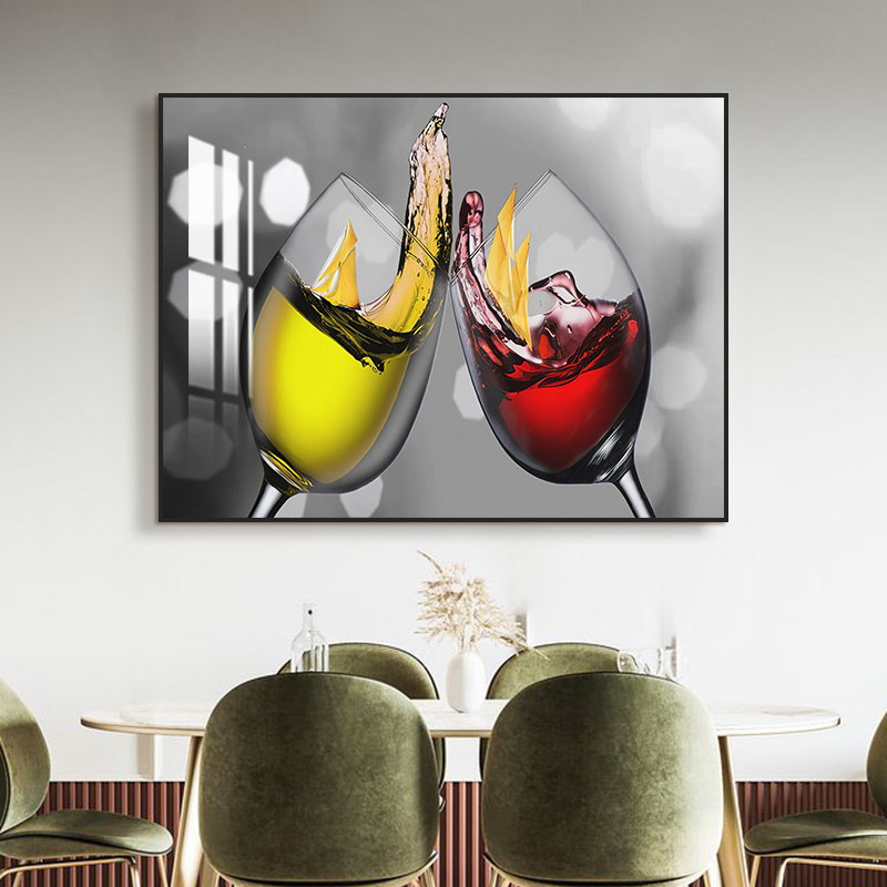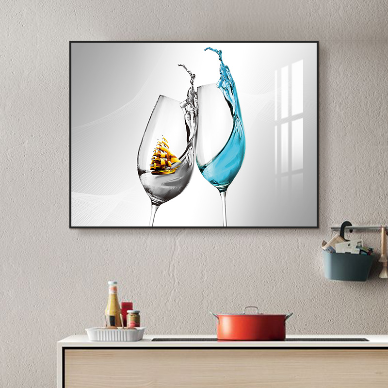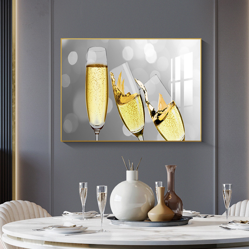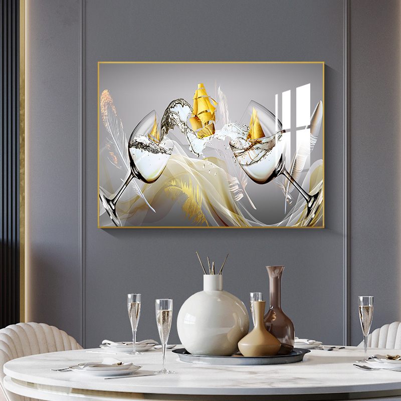 现代简约餐厅装饰画轻奢创意酒杯饭厅墙上壁画横版客厅背景墙挂画