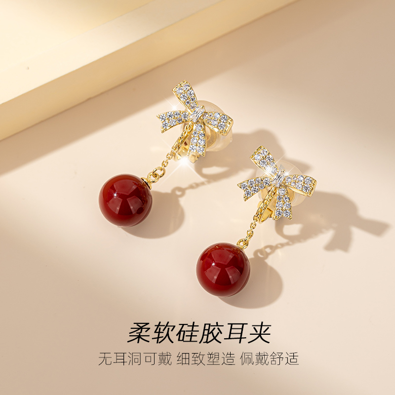 蝴蝶结红色耳夹无耳洞女新款耳饰秋冬耳环2025新款爆款高级感耳坠