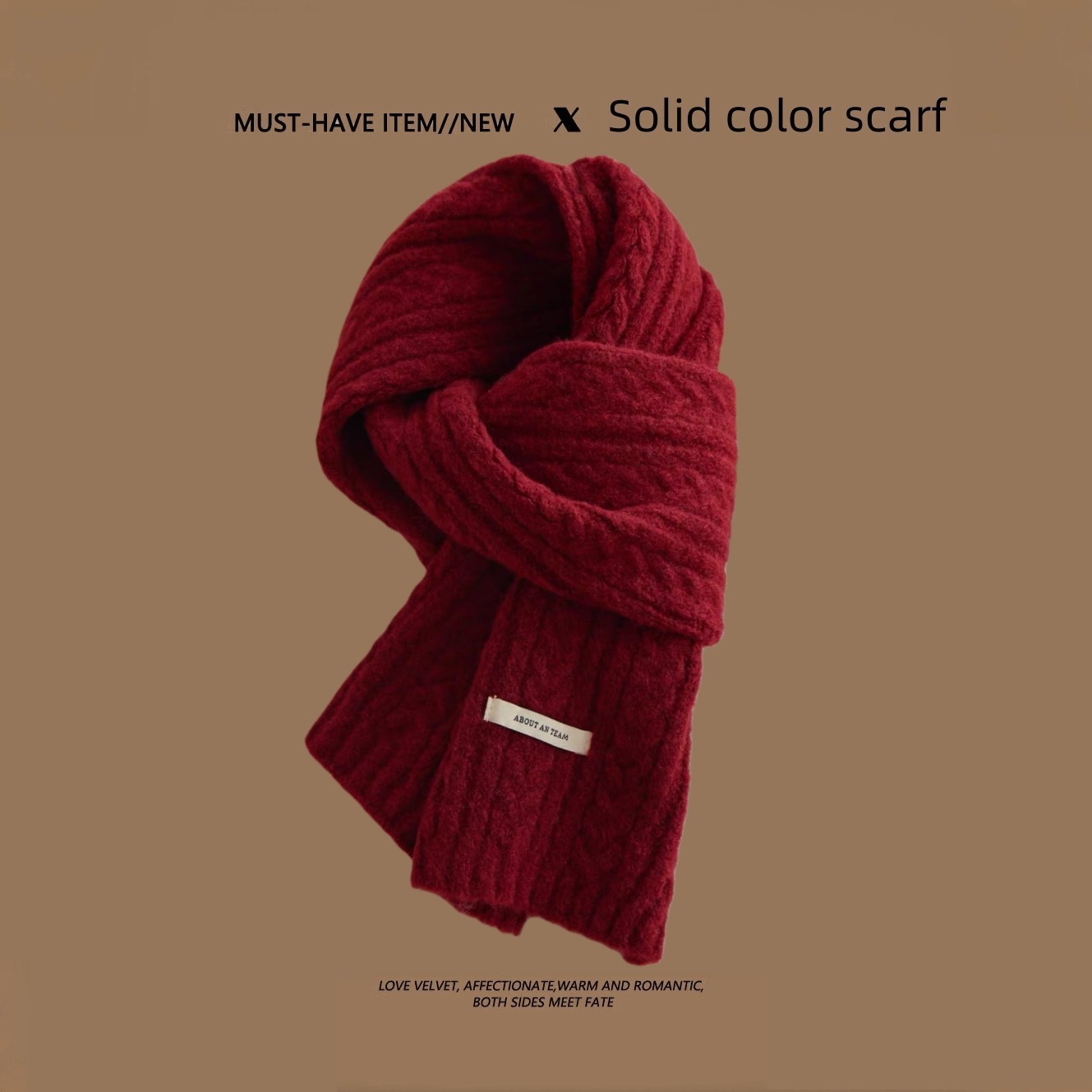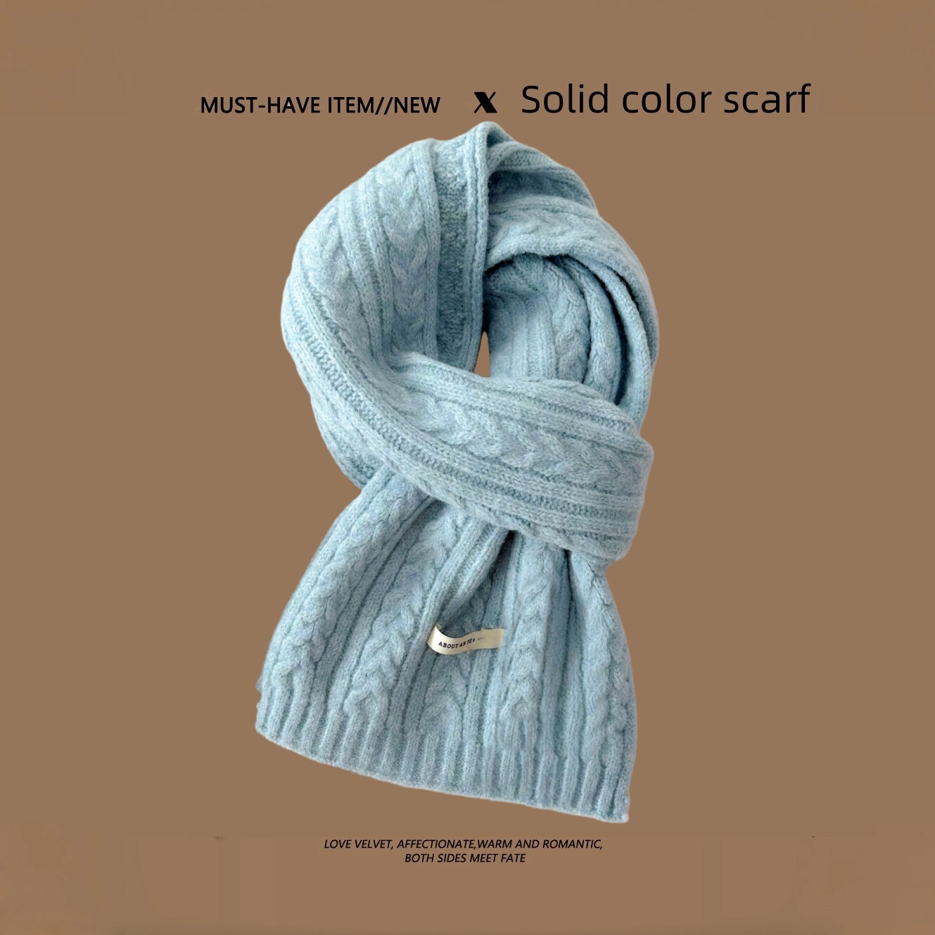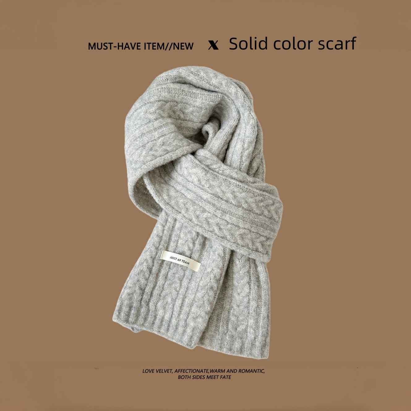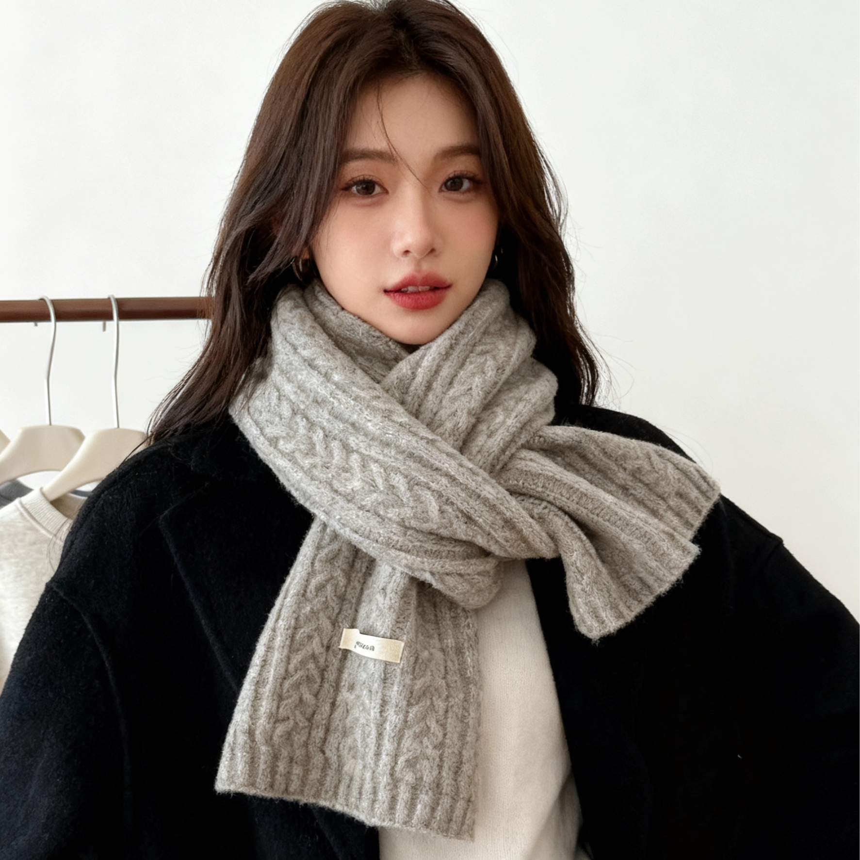 米白色高级感含羊毛女针织毛线围巾冬季围巾2025新款学生围脖男
