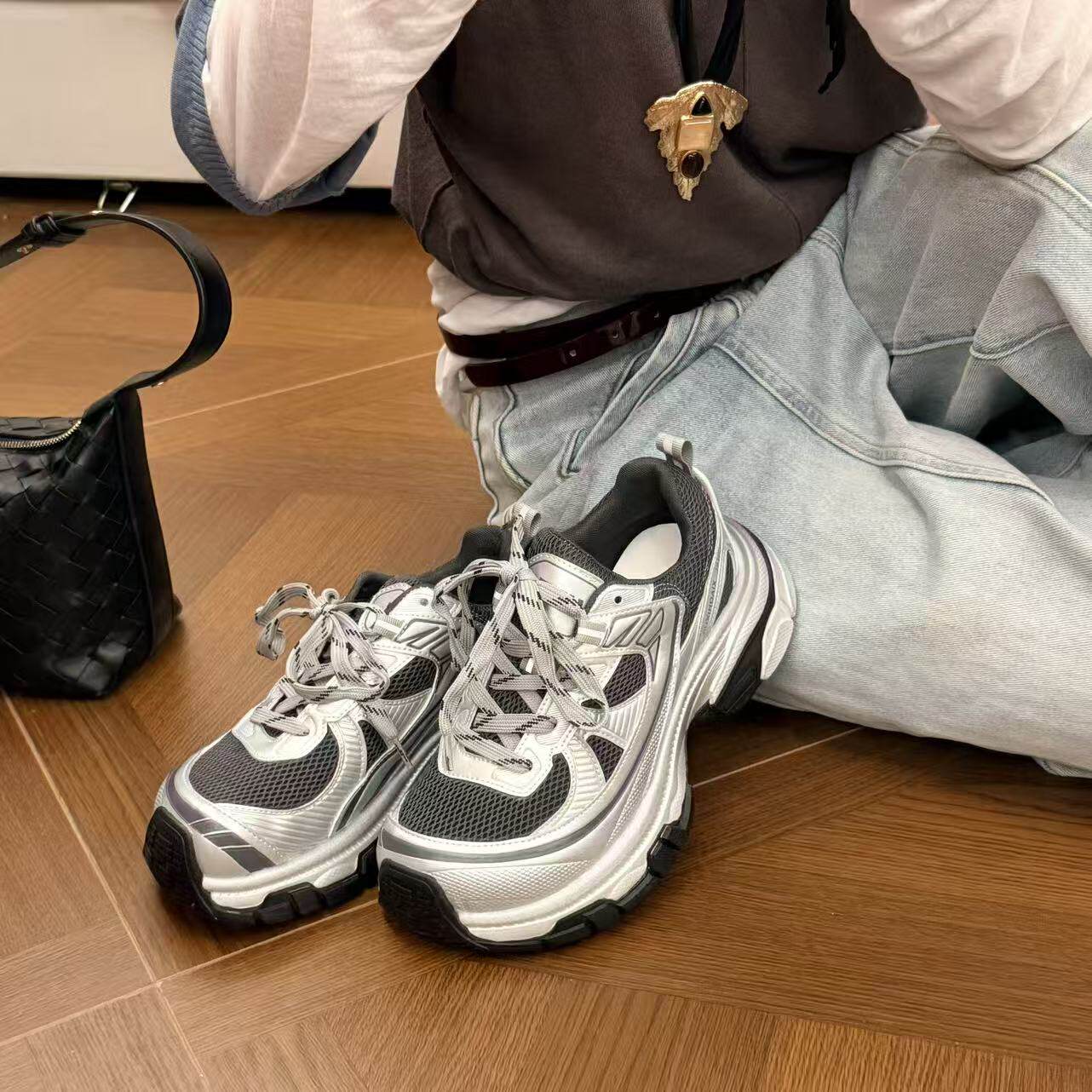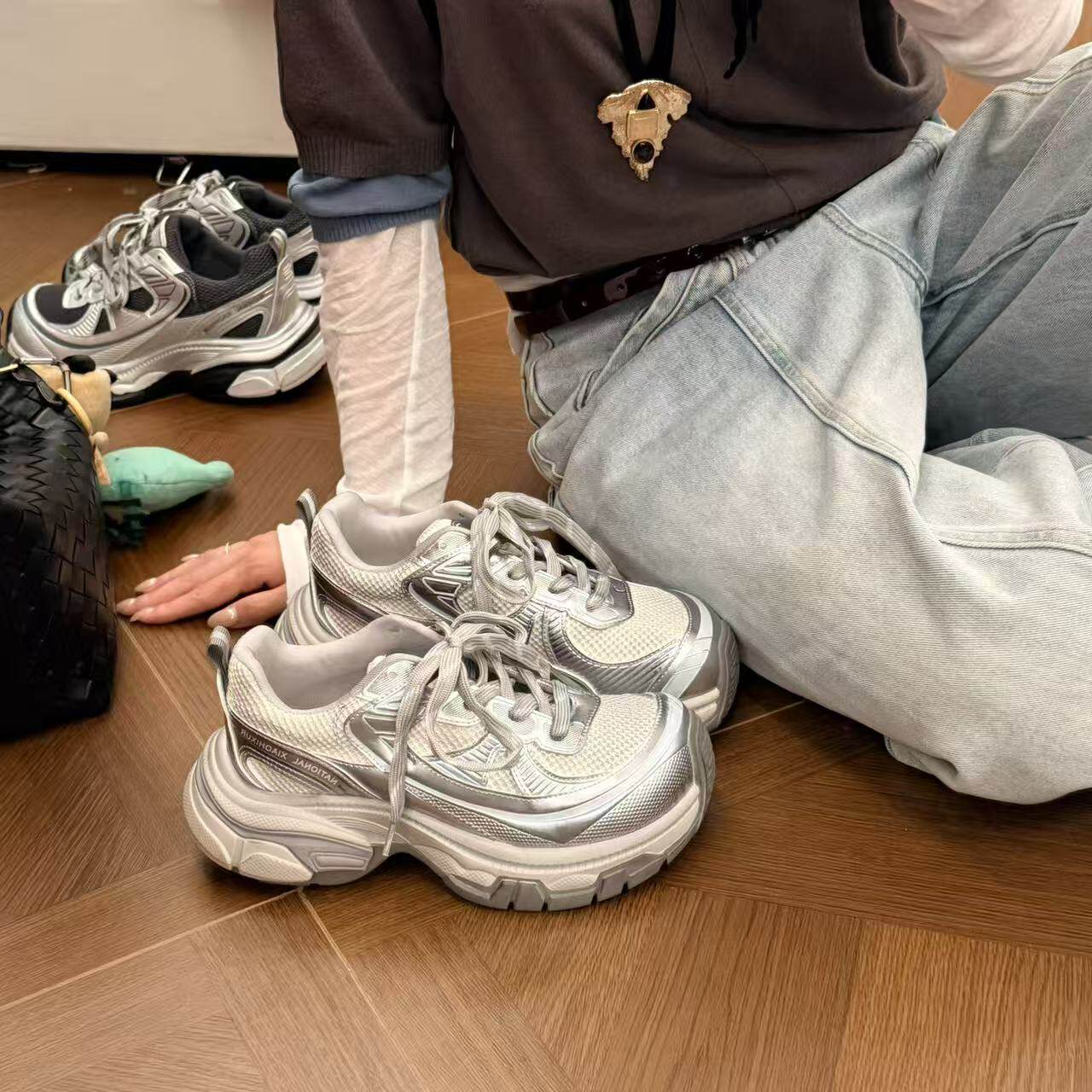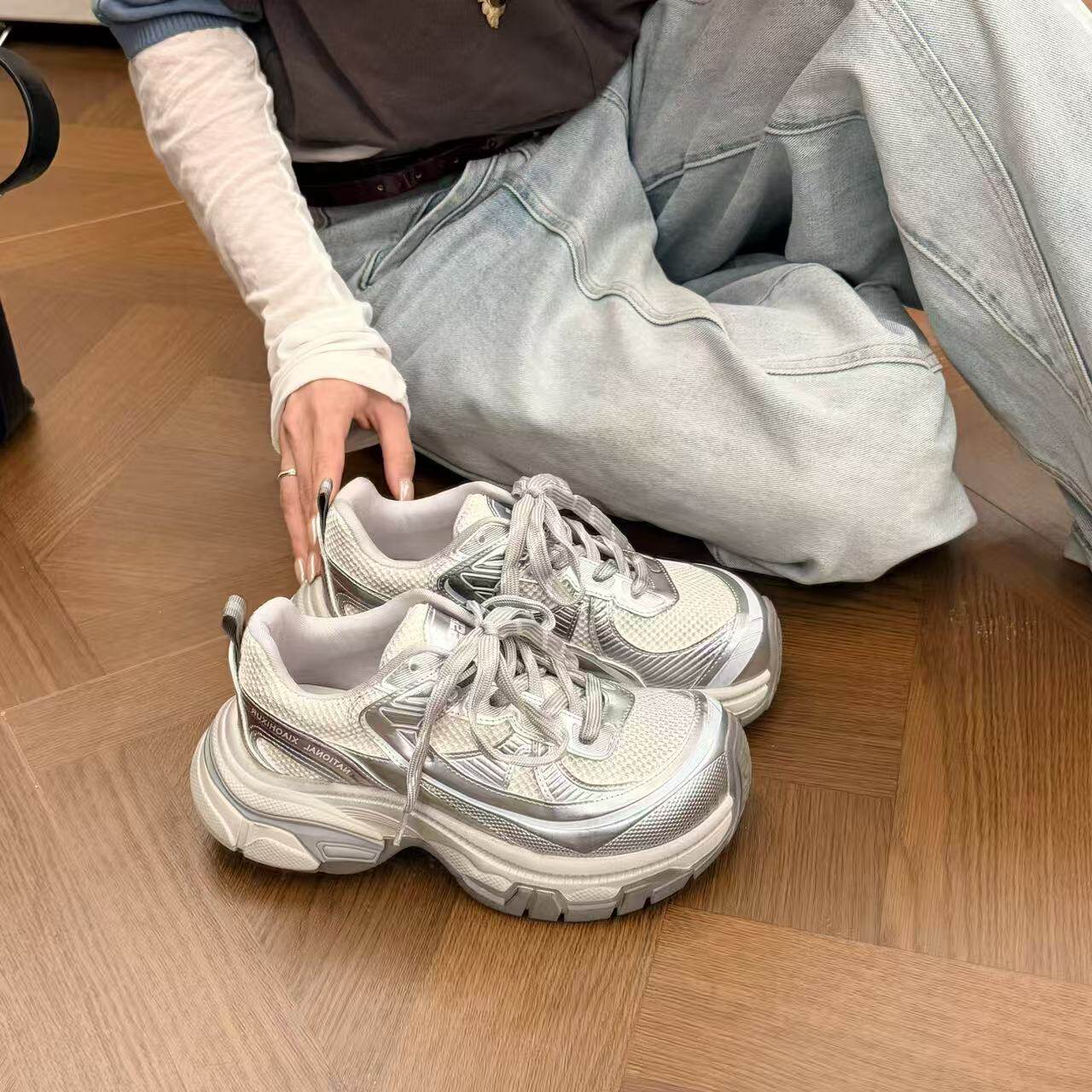 H55女鞋银河轨迹2026春季新款超轻慢跑休闲厚底拼色芒果头老爹鞋