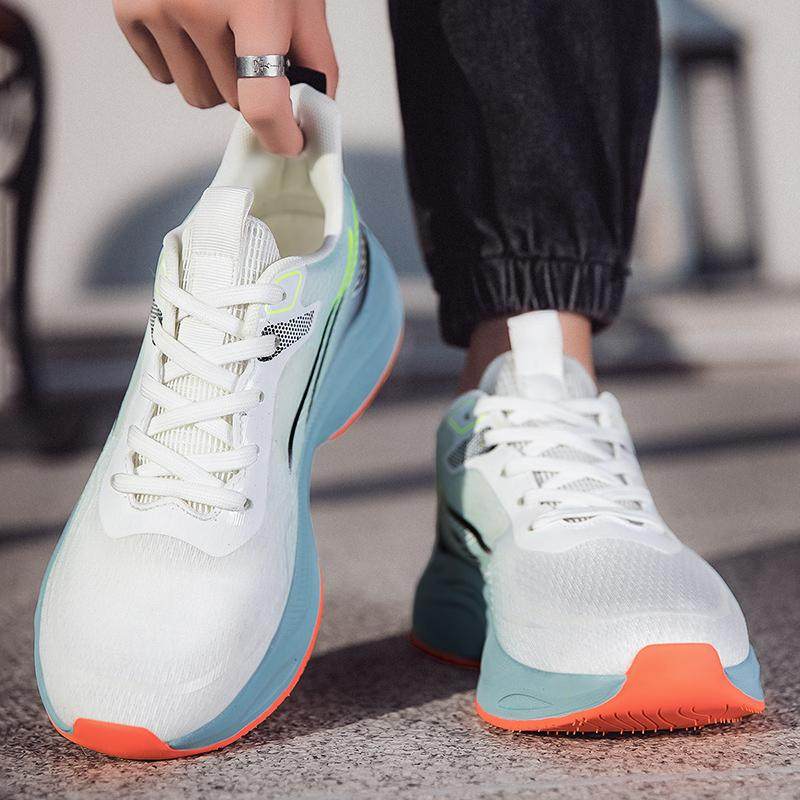 夏季新款网面男鞋轻便厚底网面休闲运动鞋男大码碳板马拉松旅游鞋