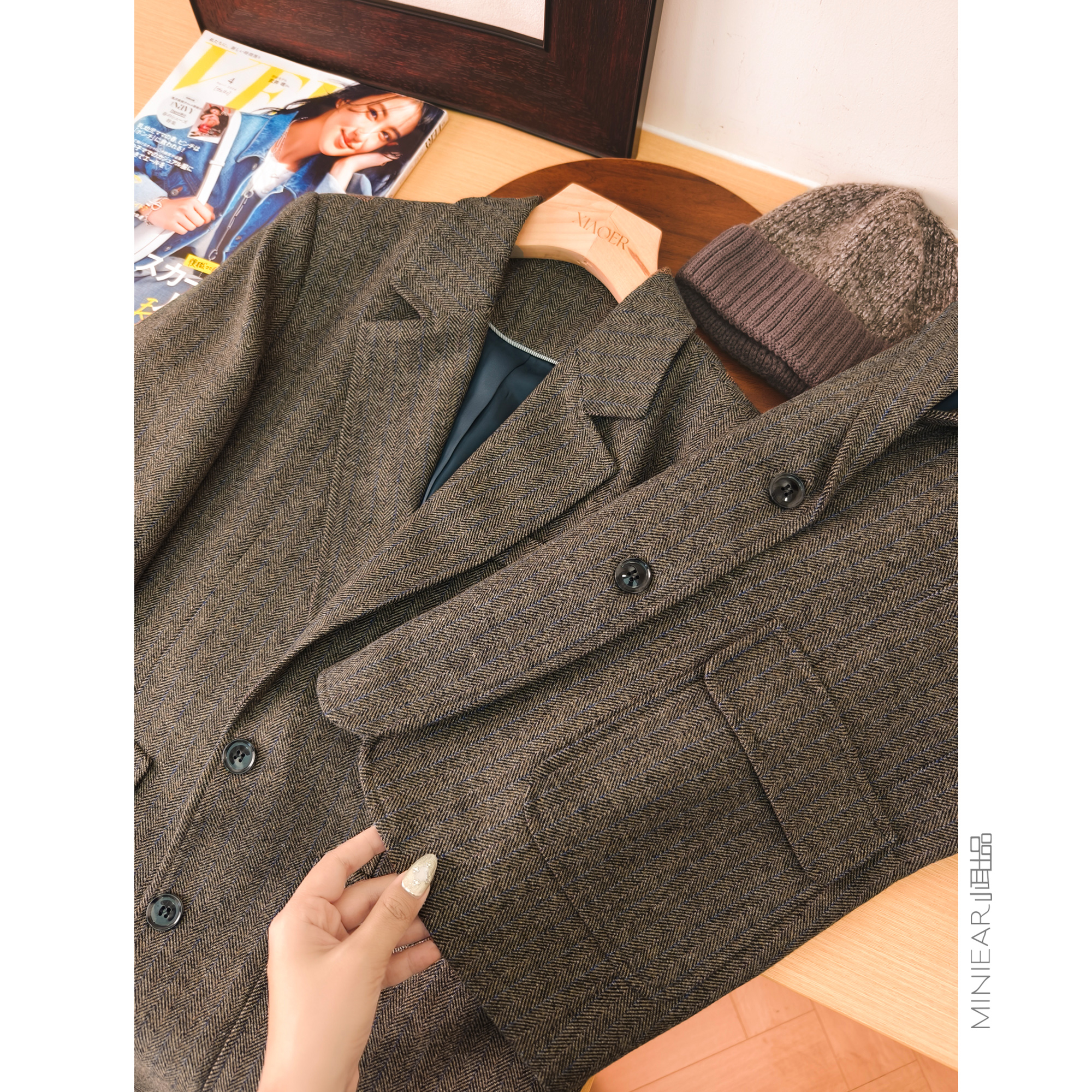 小耳出品人字呢羊毛休闲西装外套