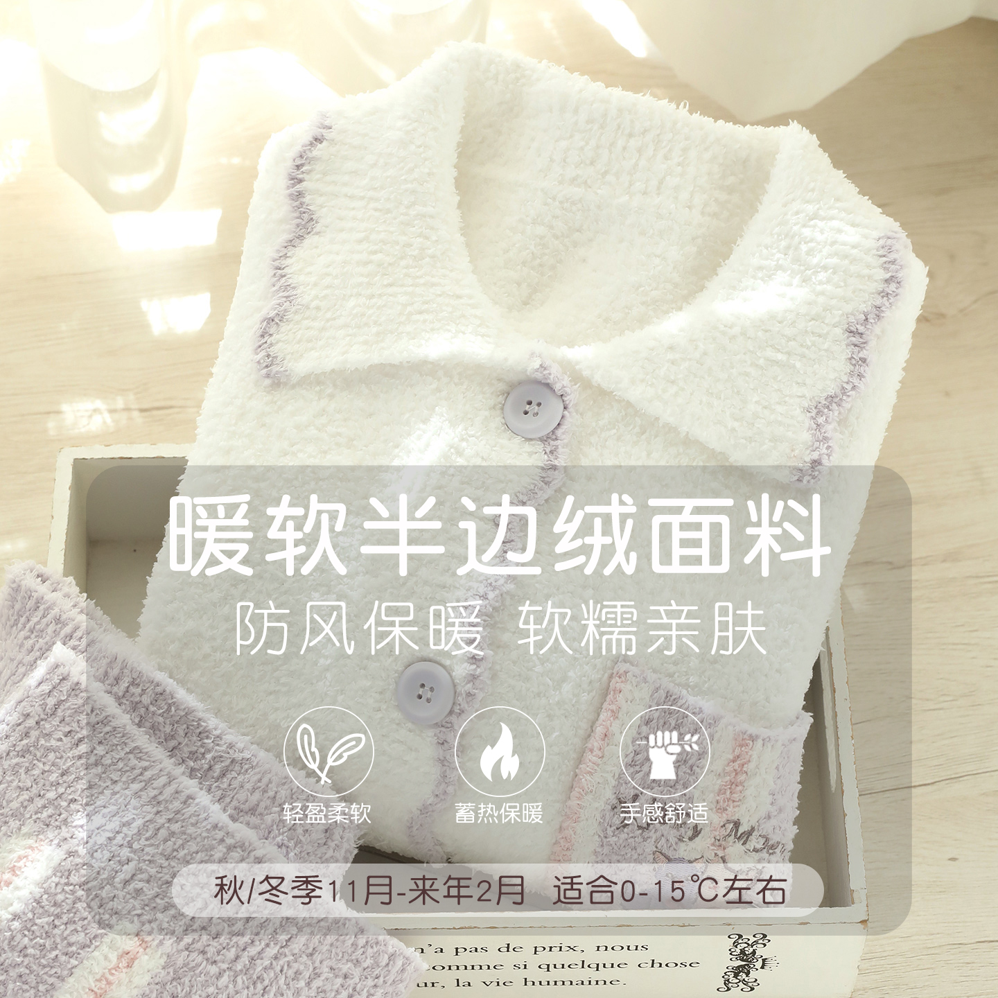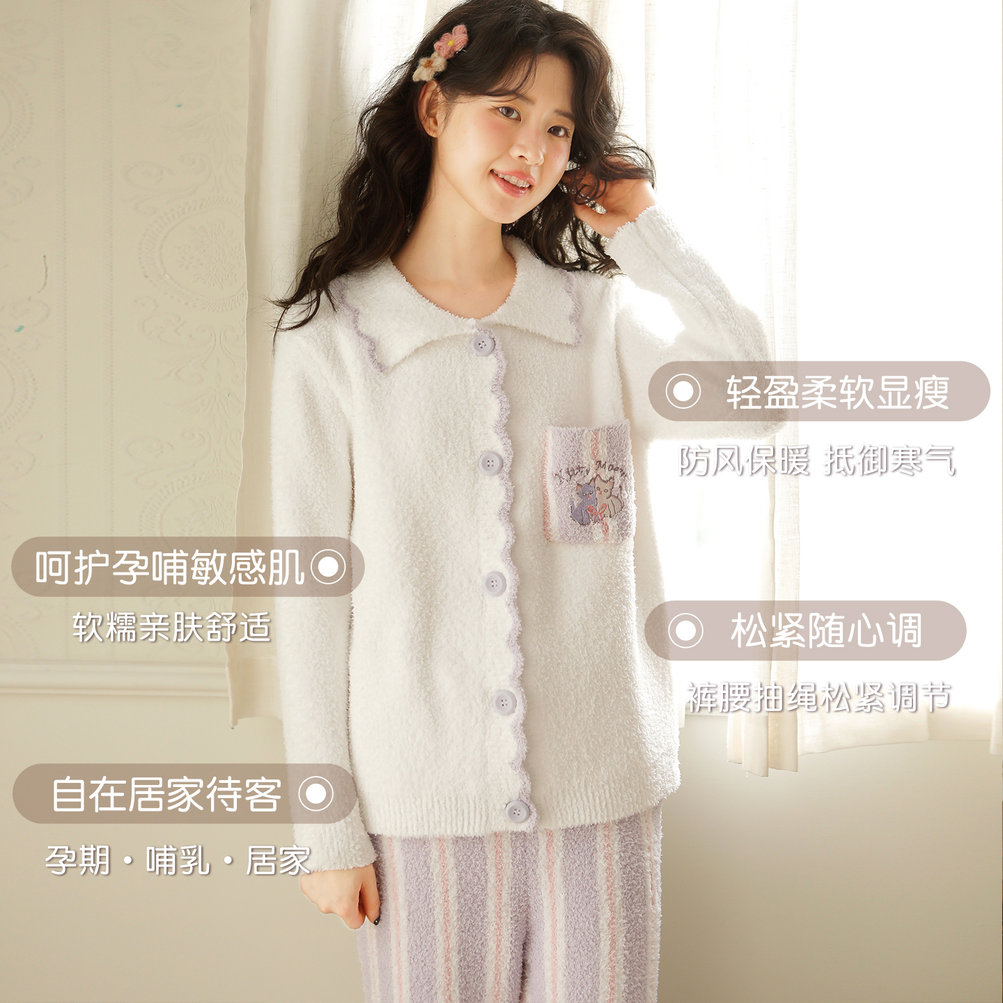 富朵半边绒月子服秋冬产后加绒加厚孕产妇睡衣保暖哺乳家居服套装