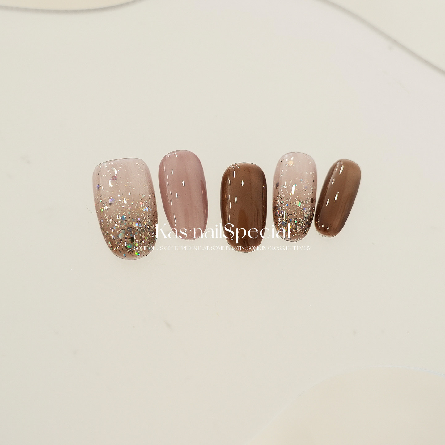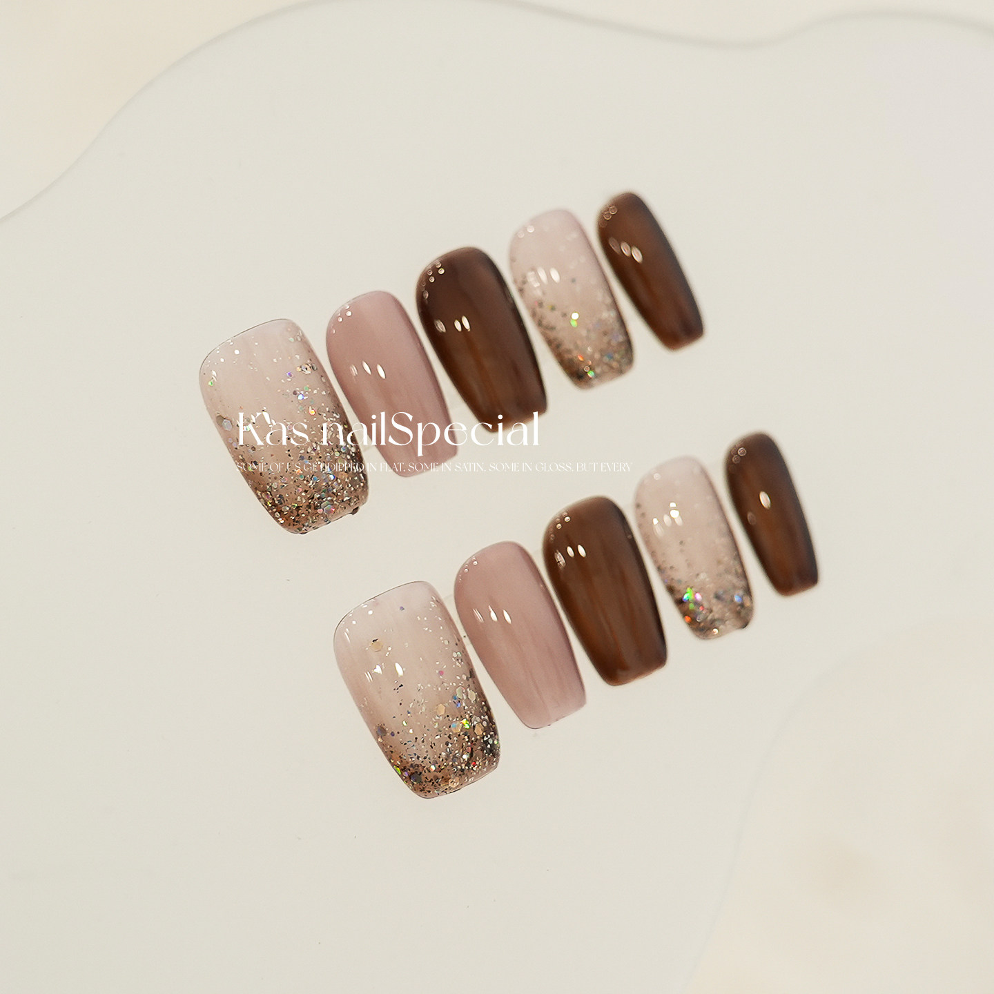 「焦糖星光」纯手工晕染渐变2025年新款美拉德新年穿戴甲过年美甲