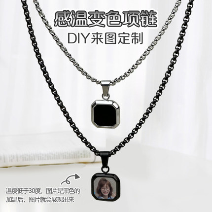 感温变色项链定制照片饰品diy相片吊坠加热激发照片磁吸项坠礼物
