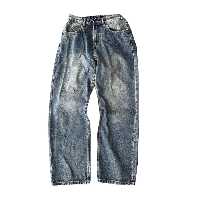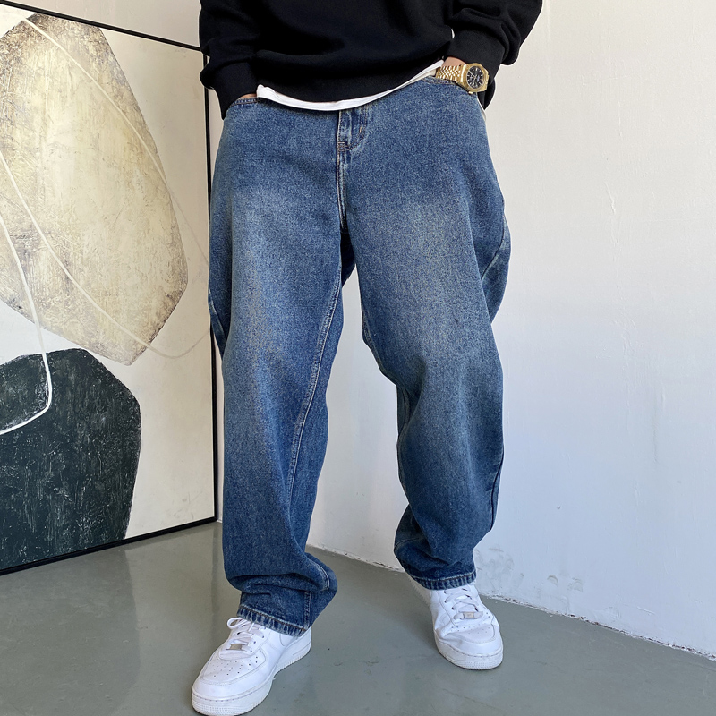 痞帅水洗复古直筒牛仔裤男宽松潮