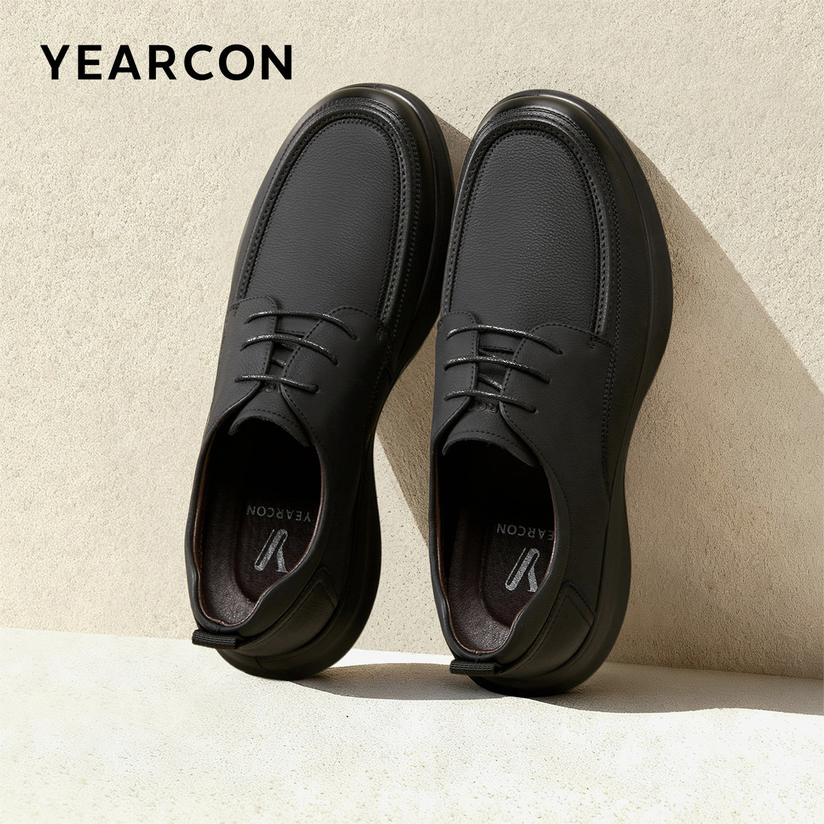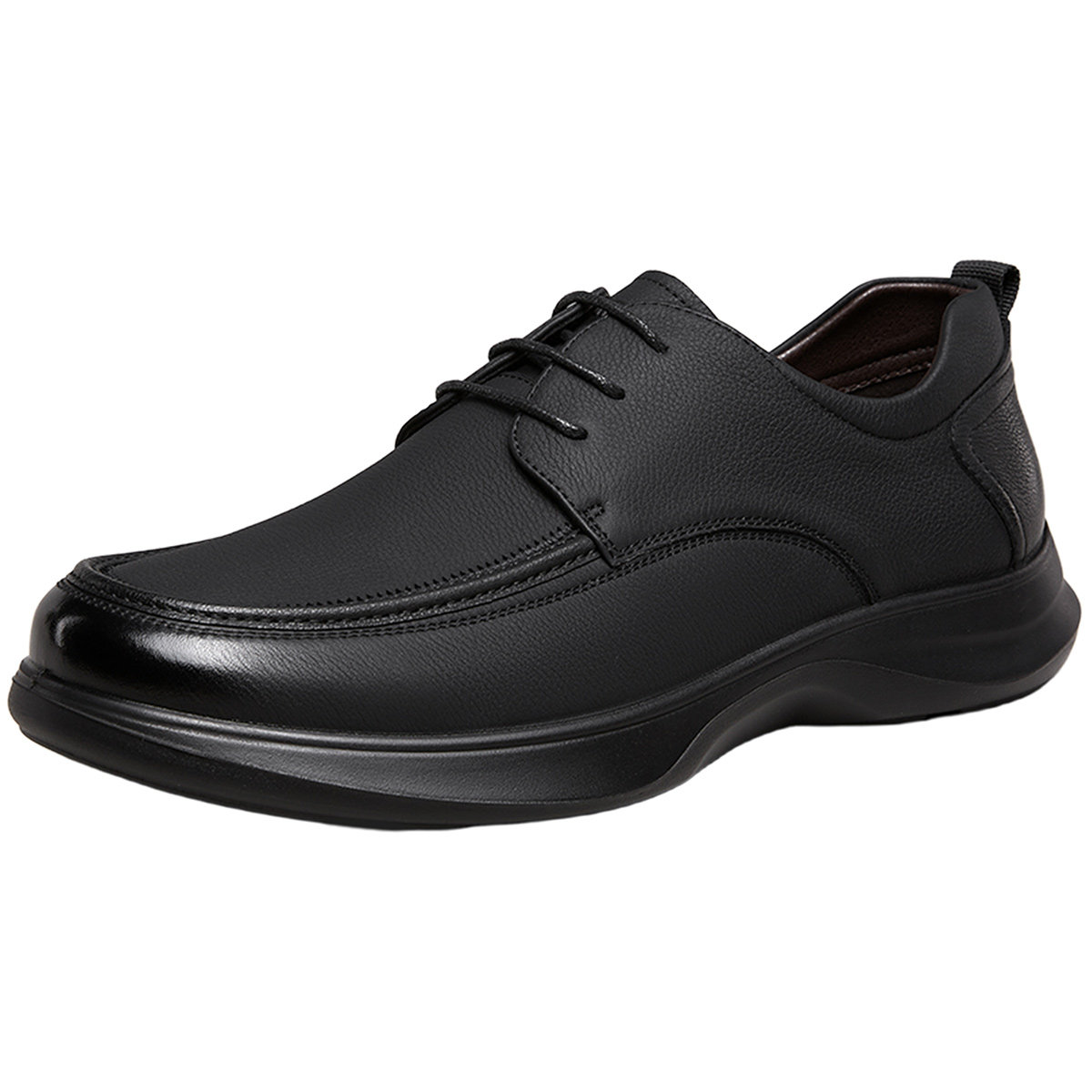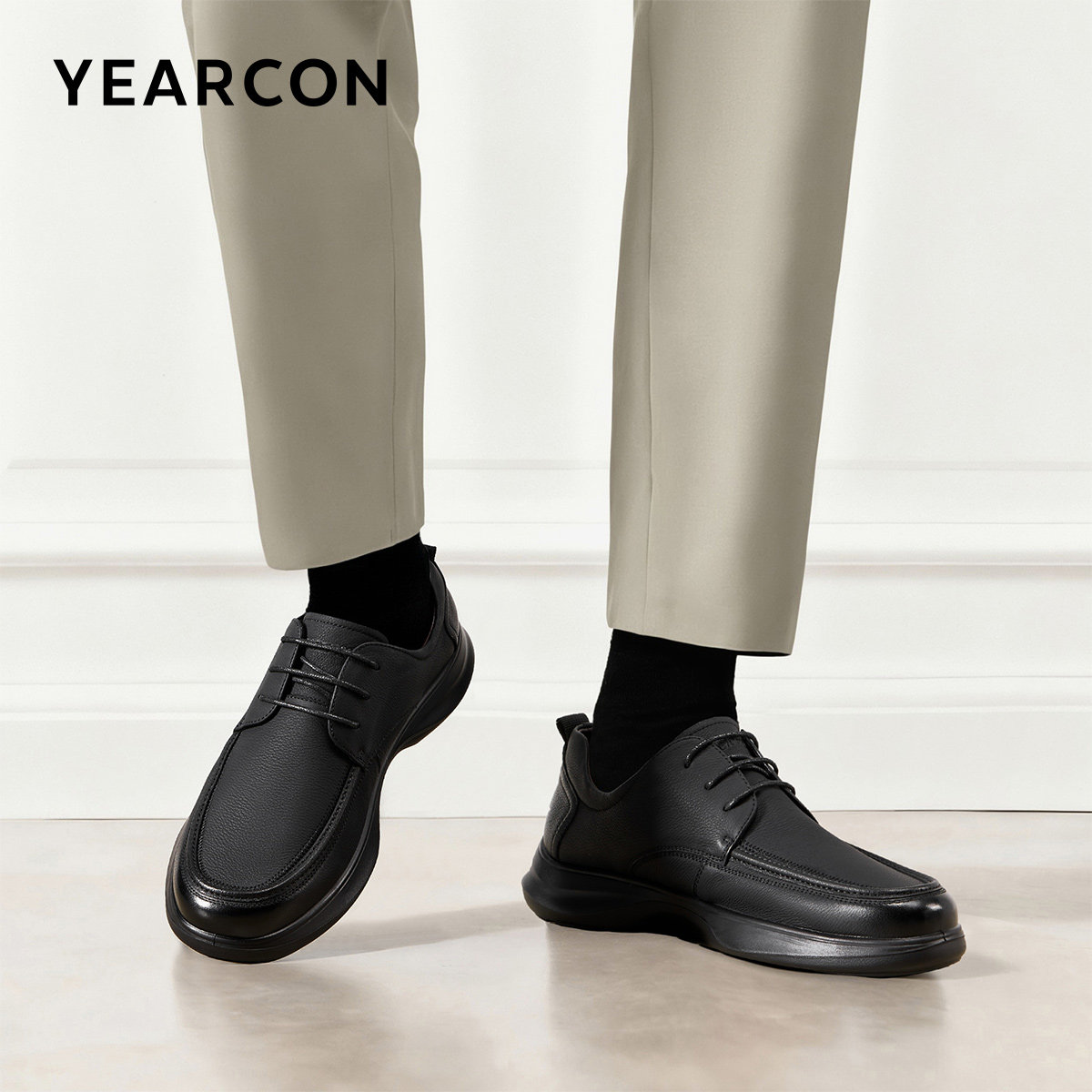 意尔康男鞋2026春季新款真皮商务休闲皮鞋男士软底全黑公务通勤鞋