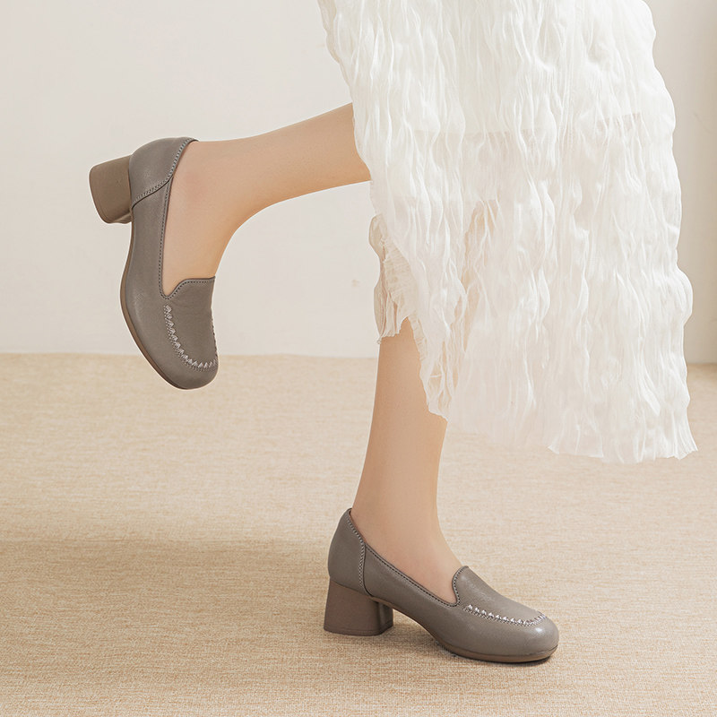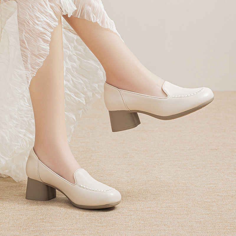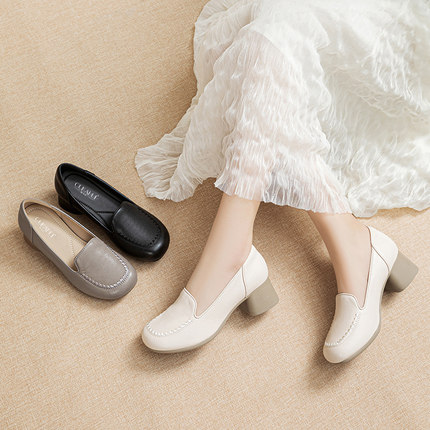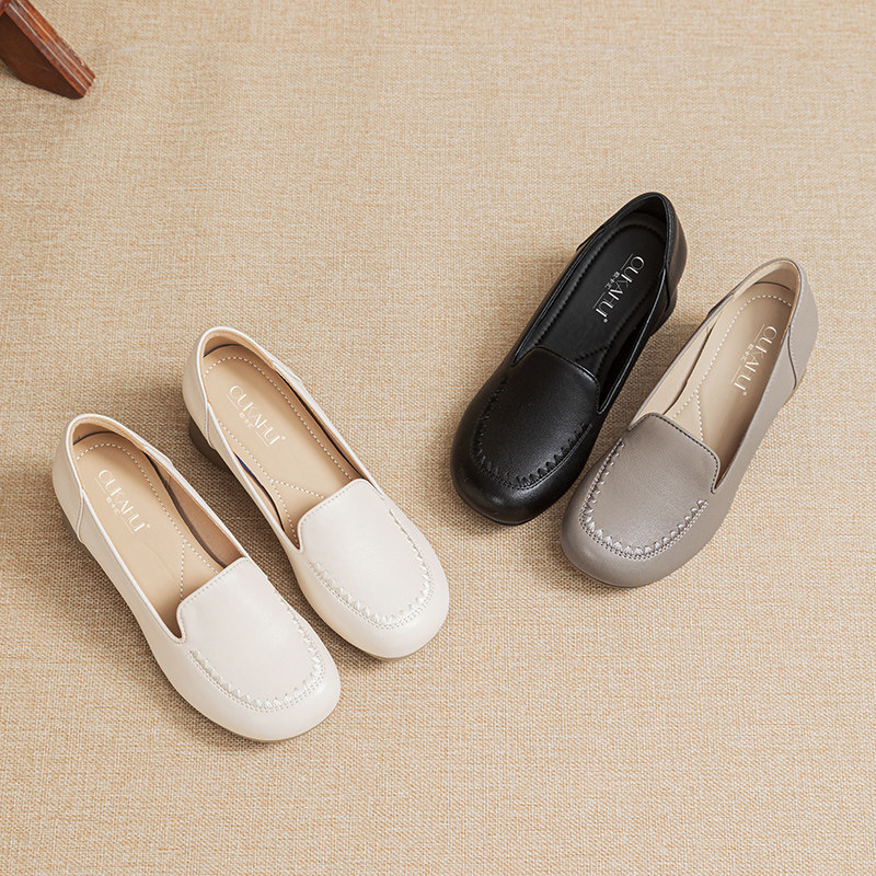 欧卡汇妈妈鞋中老年舒适单鞋工作鞋子真皮软底软面皮鞋一脚蹬女鞋