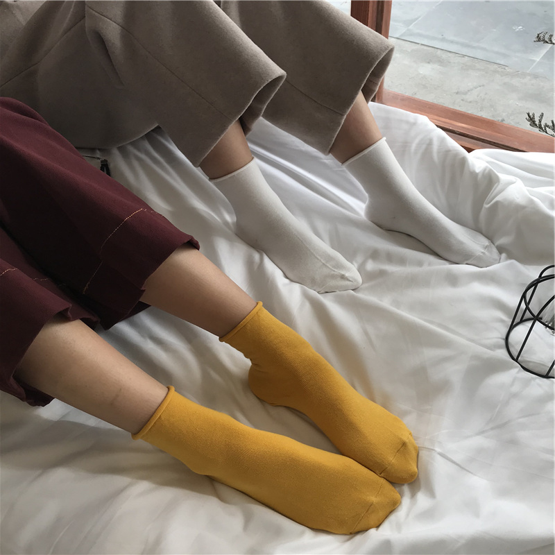 4双装夏天纯色木耳卷边短堆堆袜子女ins潮可爱日系薄款女袜中筒袜