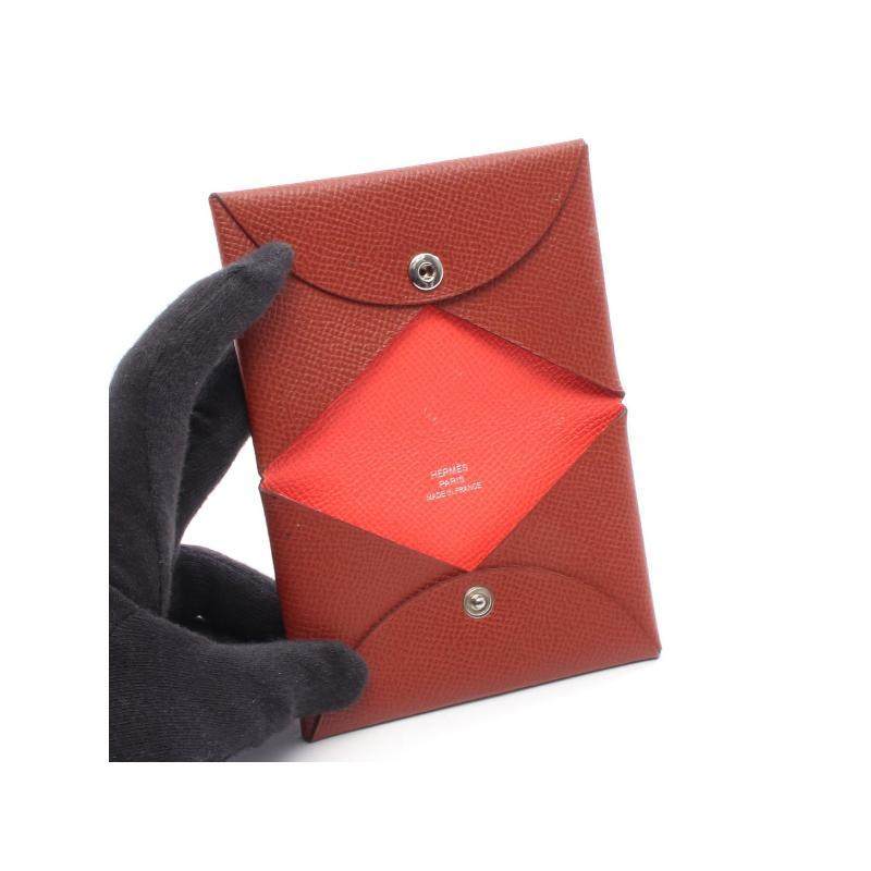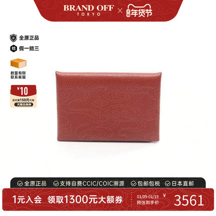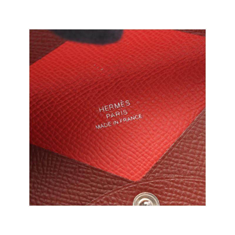 中古Hermes爱马仕女A级95新coin purse零钱包牛皮零钱包红色