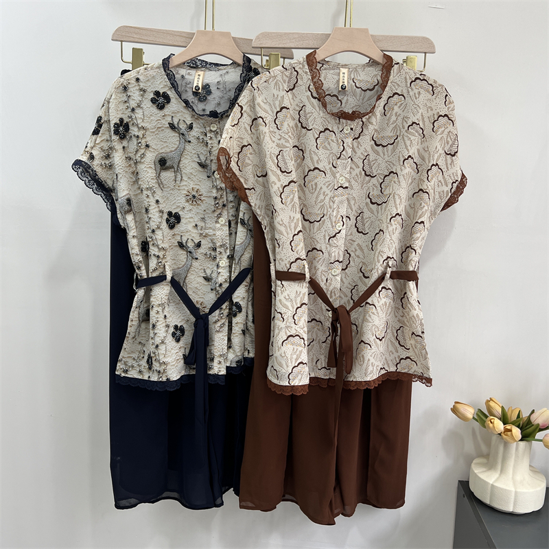 2025新款妈妈装套装夏季收腰t恤上衣洋气质中老年女装时尚两件套