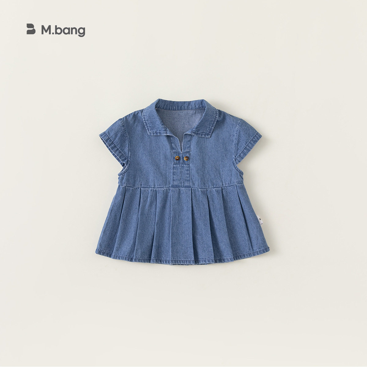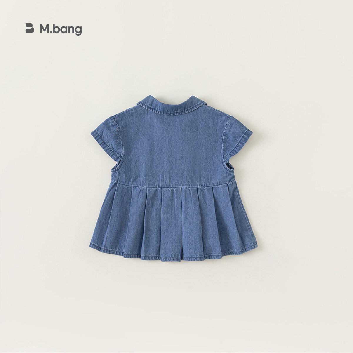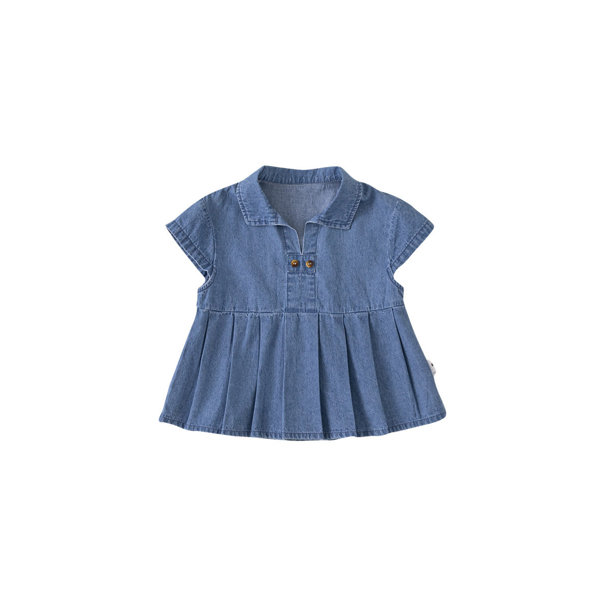 babycity儿童牛仔衬衫韩版洋气女童娃娃衫夏装短袖上衣潮