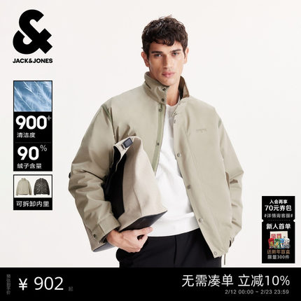 【商场爆款】杰克琼斯男装士冬立领羽绒服可拆卸内胆潮225423024