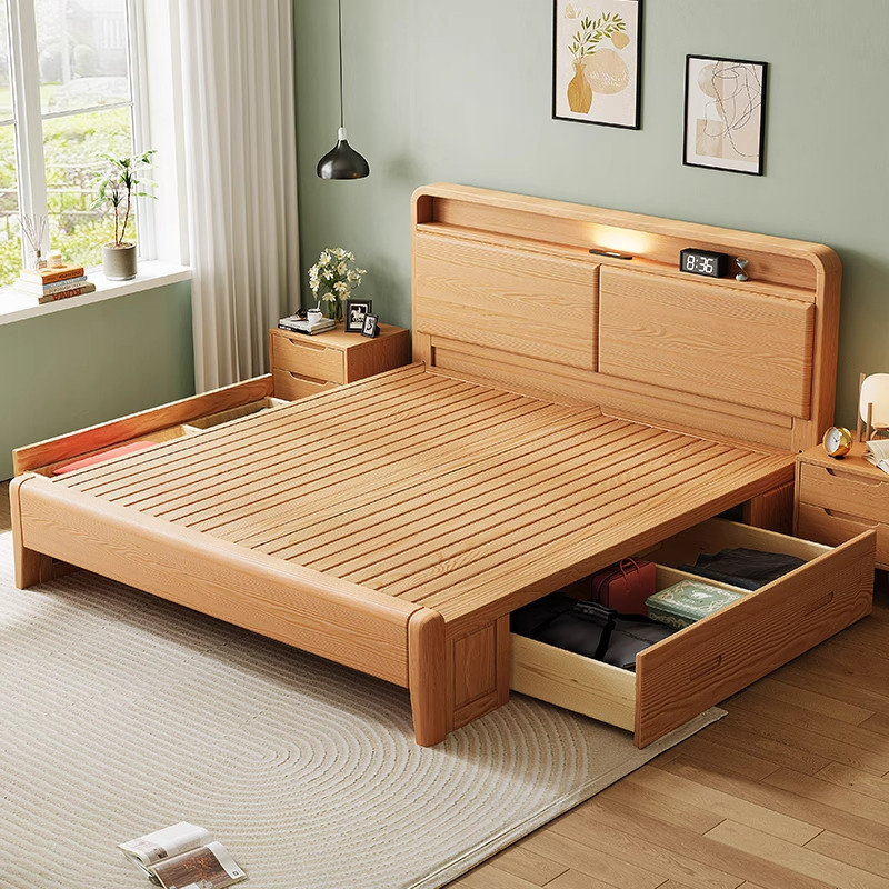 床实木床现代简约床1.8米卧室双人床橡胶木单人1.5米床高箱储物床