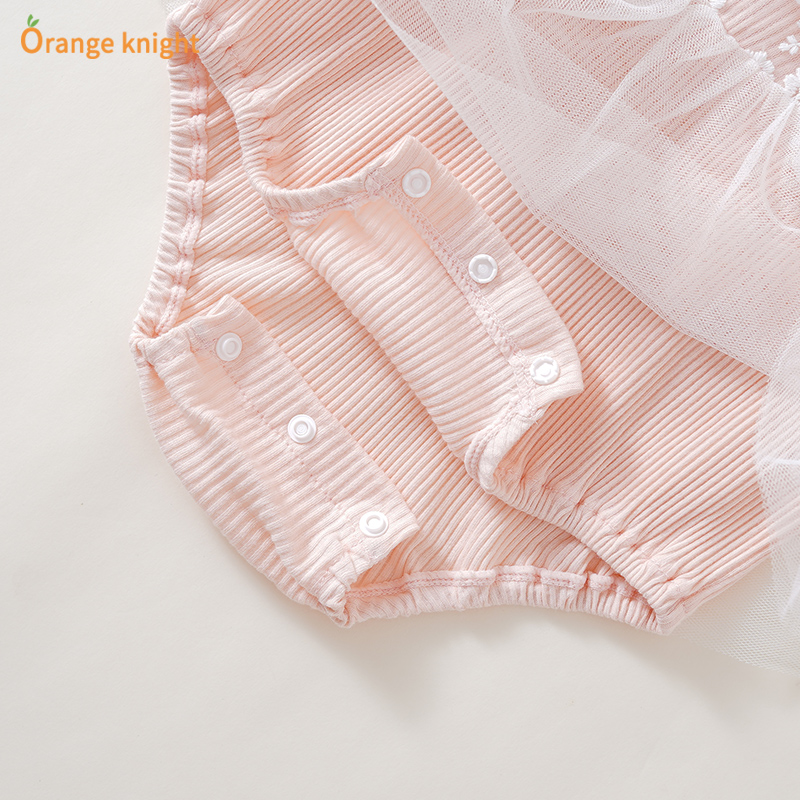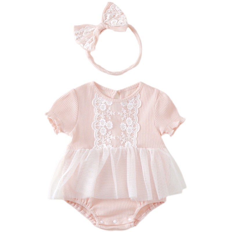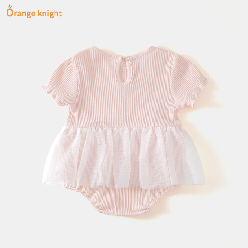 婴儿夏装女宝宝公主满月连体衣网红百天三角包屁衣短袖周岁礼服薄