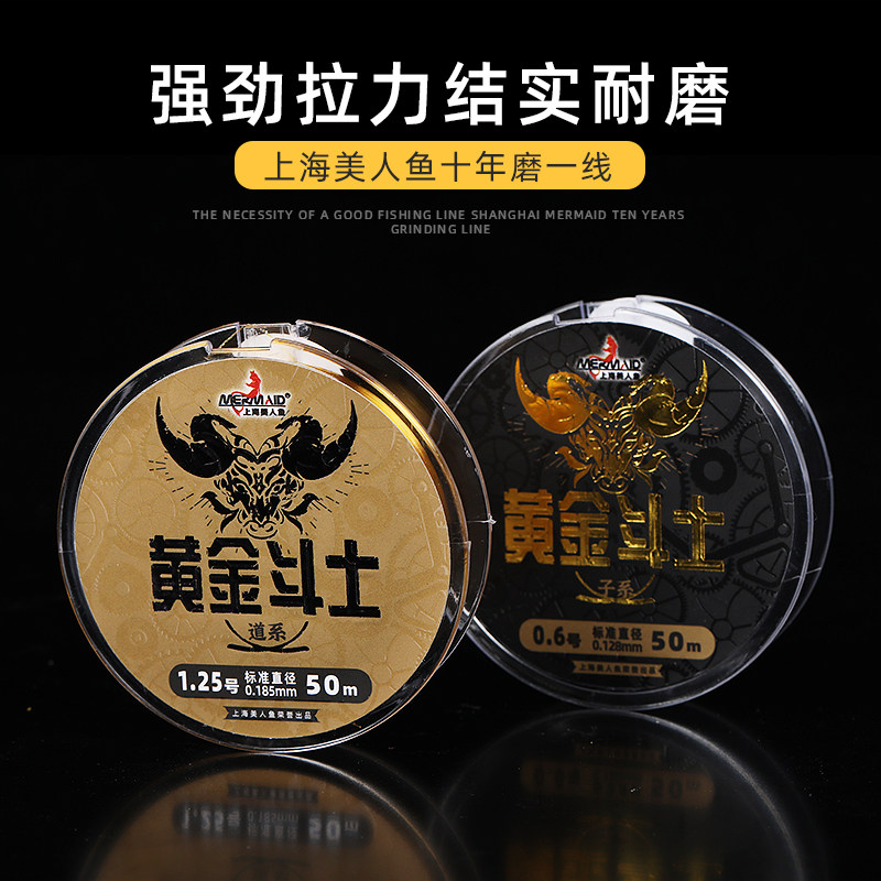 美人鱼旗舰店新品黄金斗士50米鱼线结实耐磨线体柔软强劲拉力