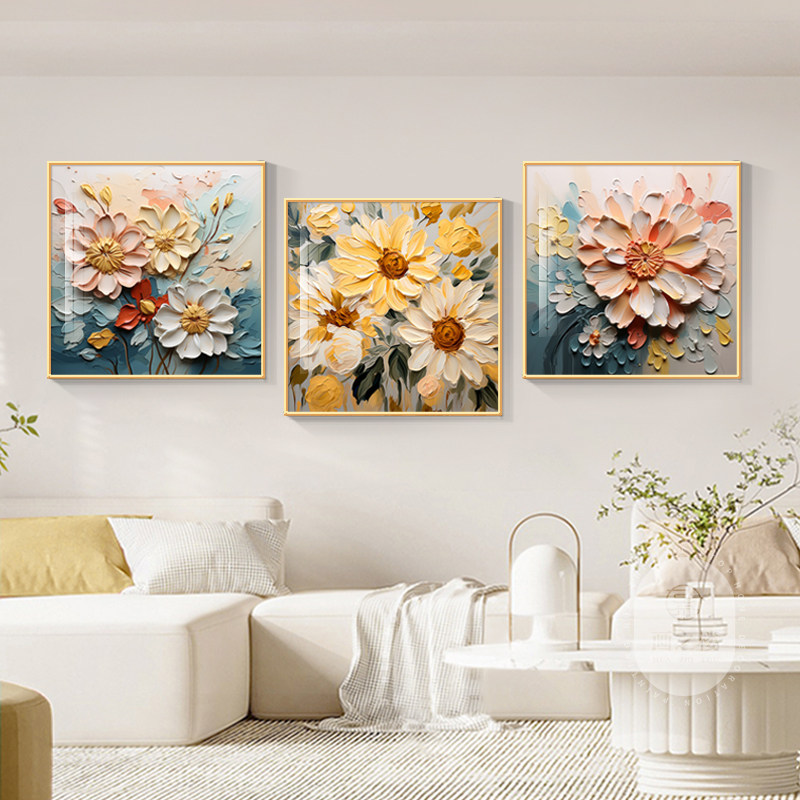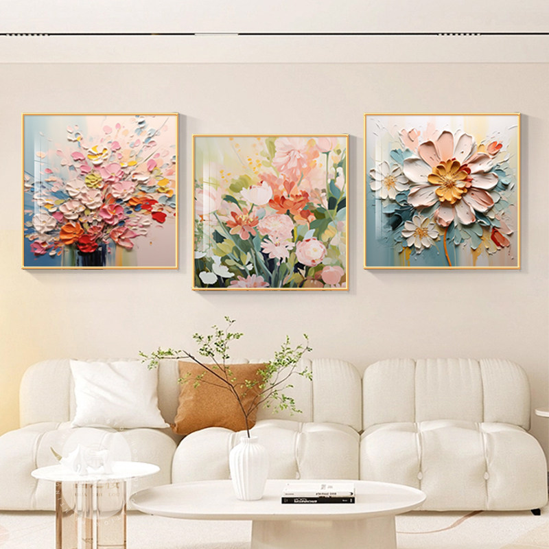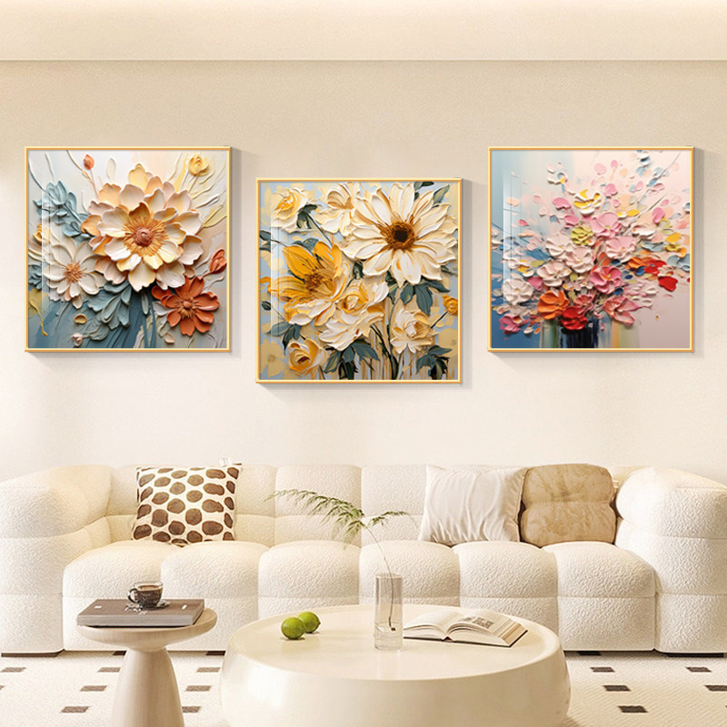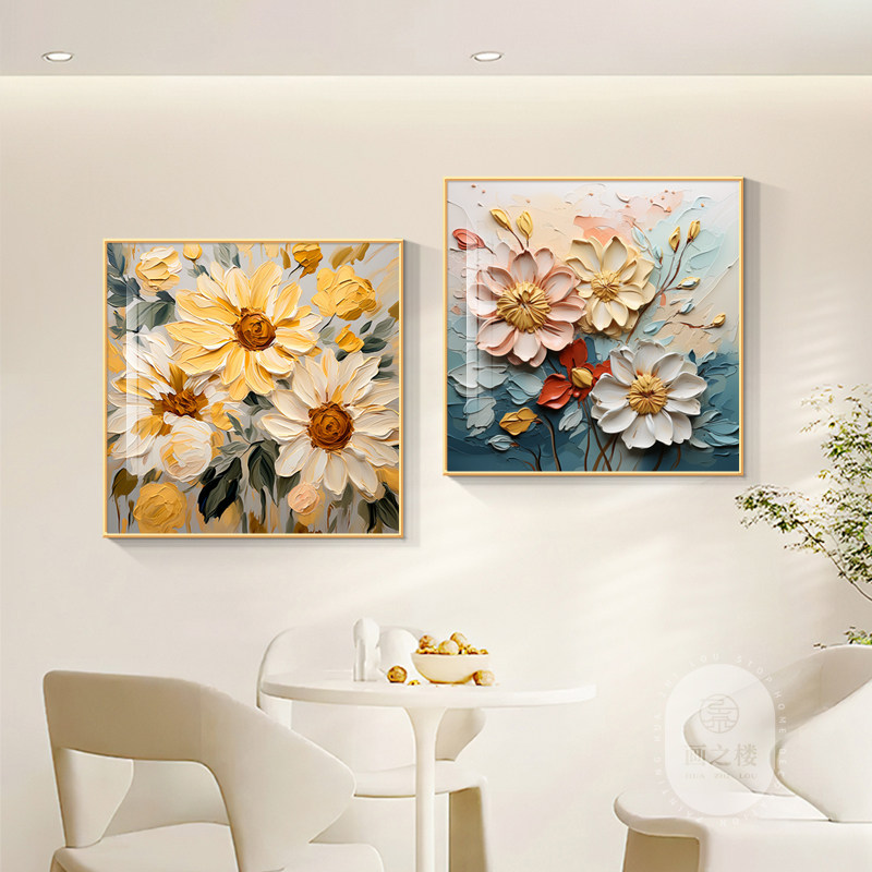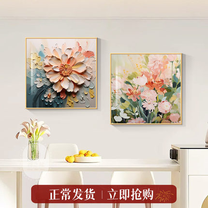 奶油风花开富贵餐厅画正方形大芬油画村挂画抽象花卉饭厅卧室壁画