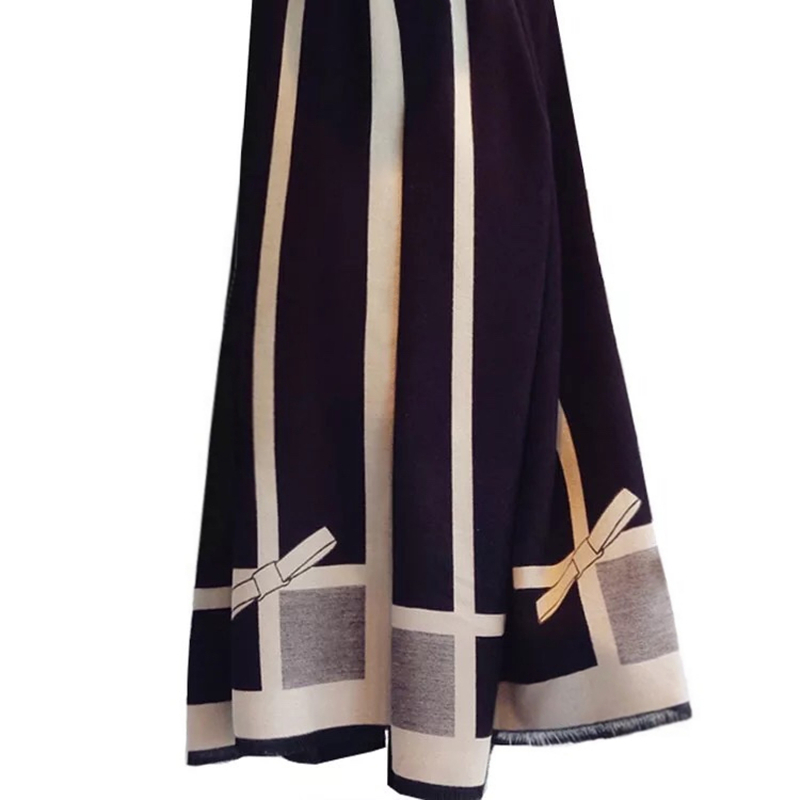 小溜家韩国春秋季仿羊绒围巾女蝴蝶结超大双面仿羊毛披肩保暖围脖
