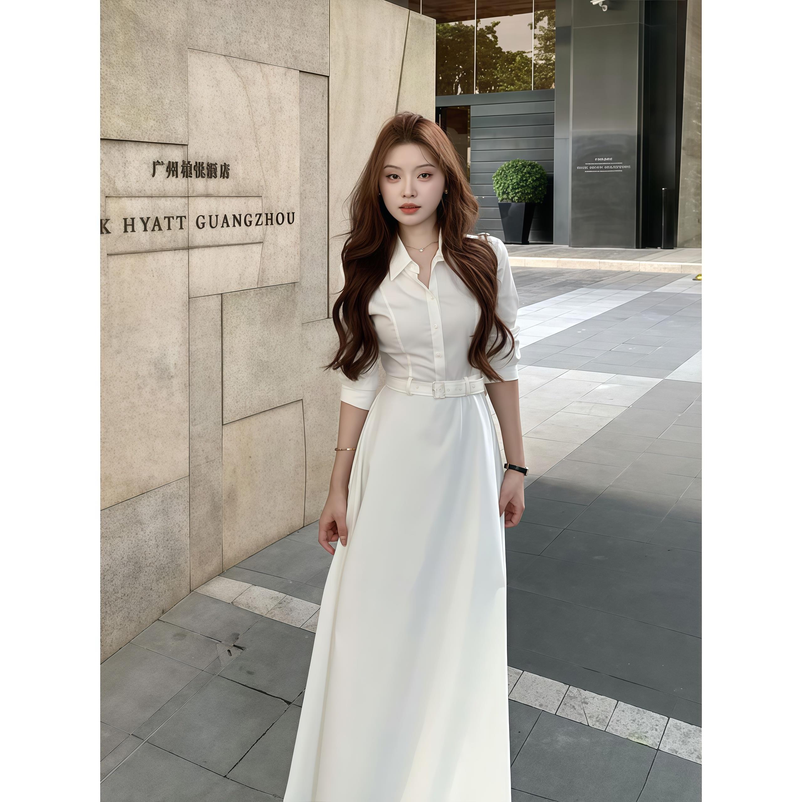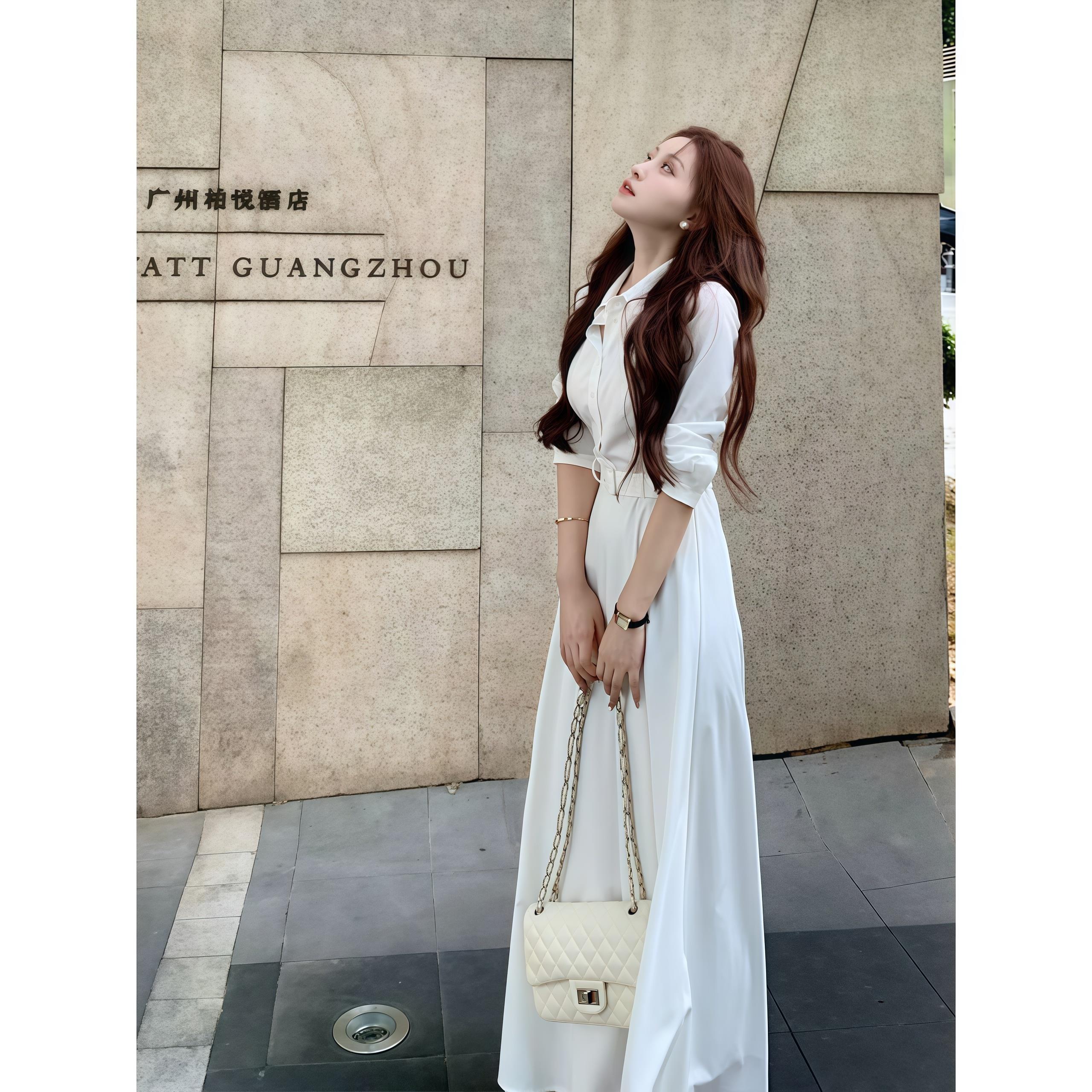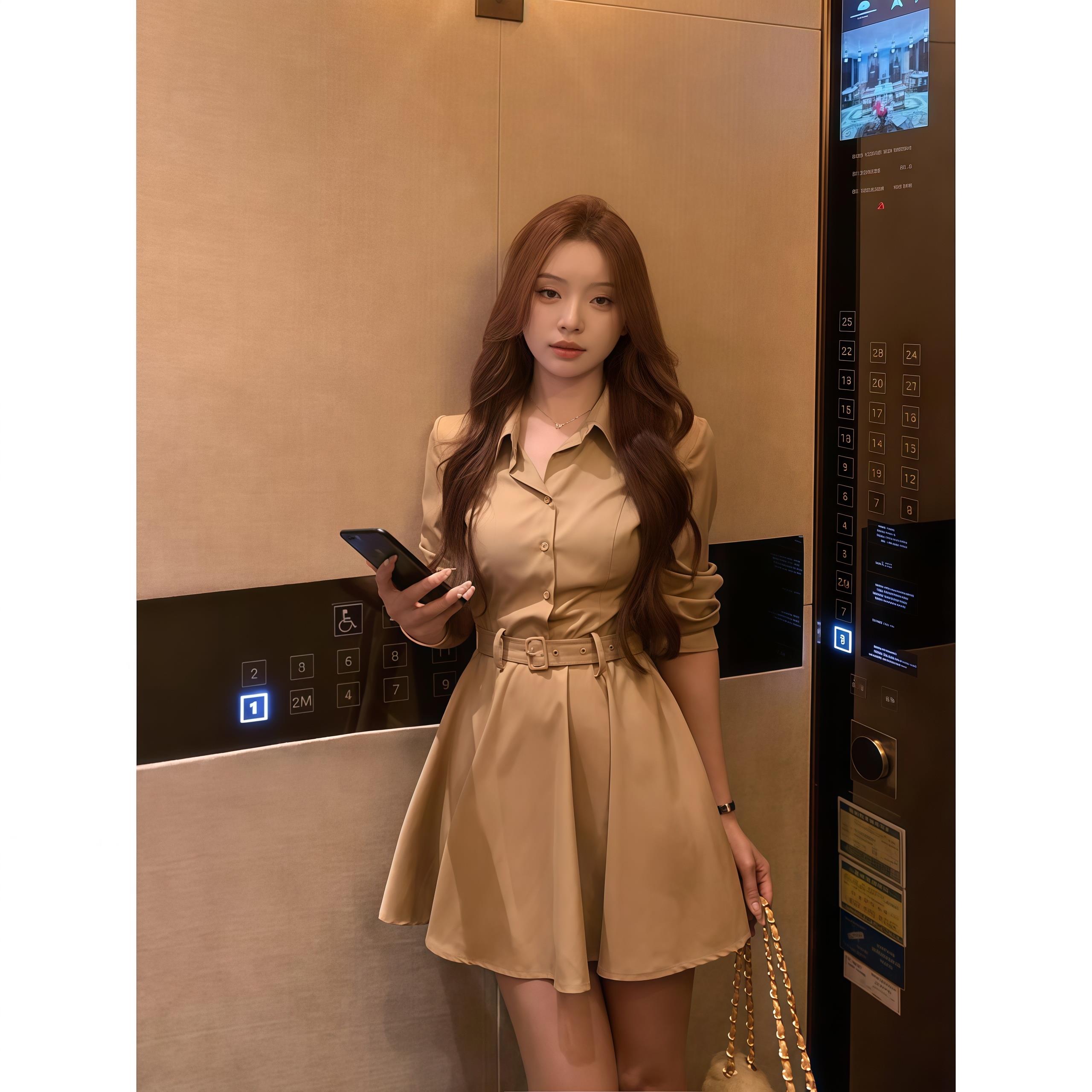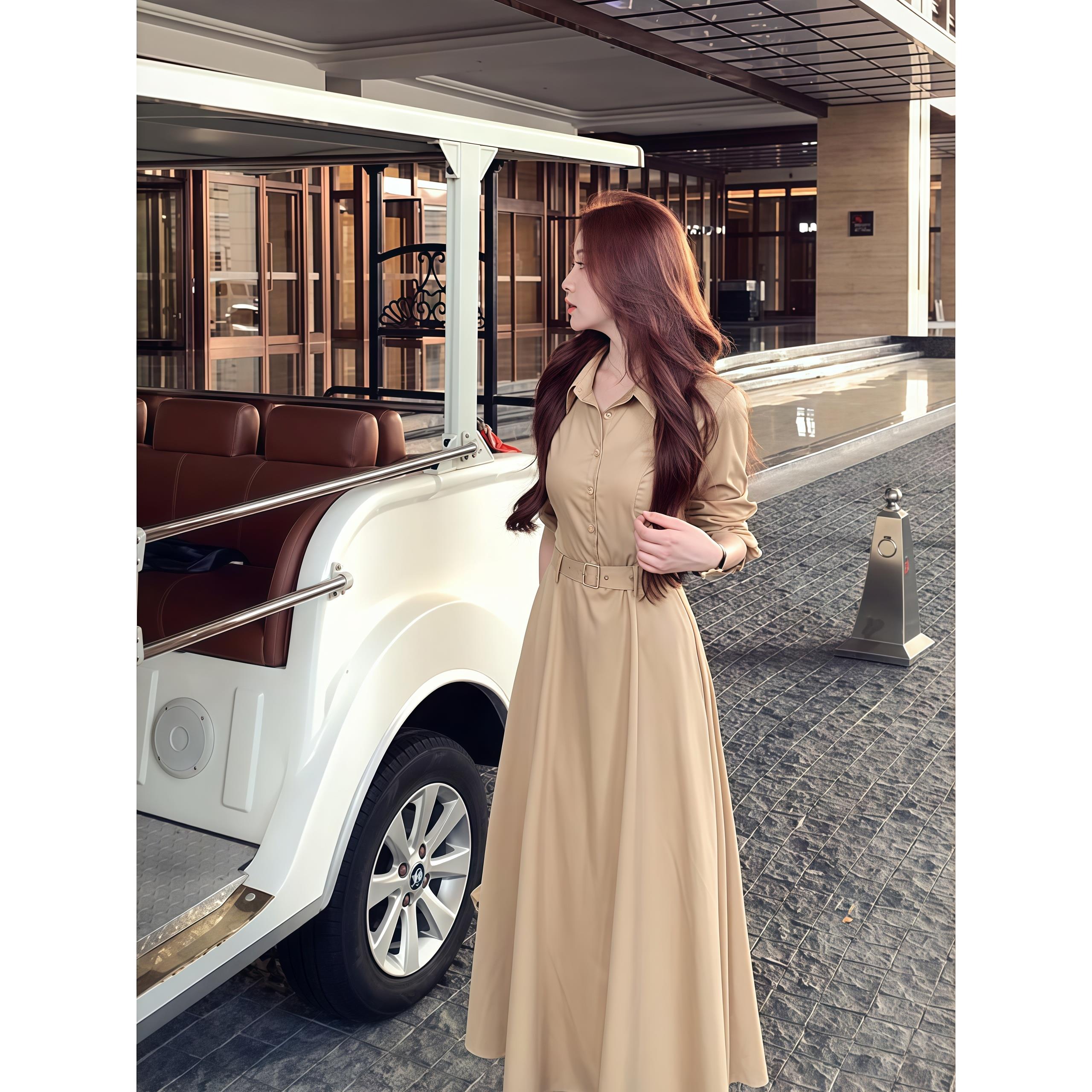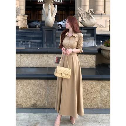 法式气质优雅polo领连衣裙女秋冬季新款高级感收腰大摆A字长裙子