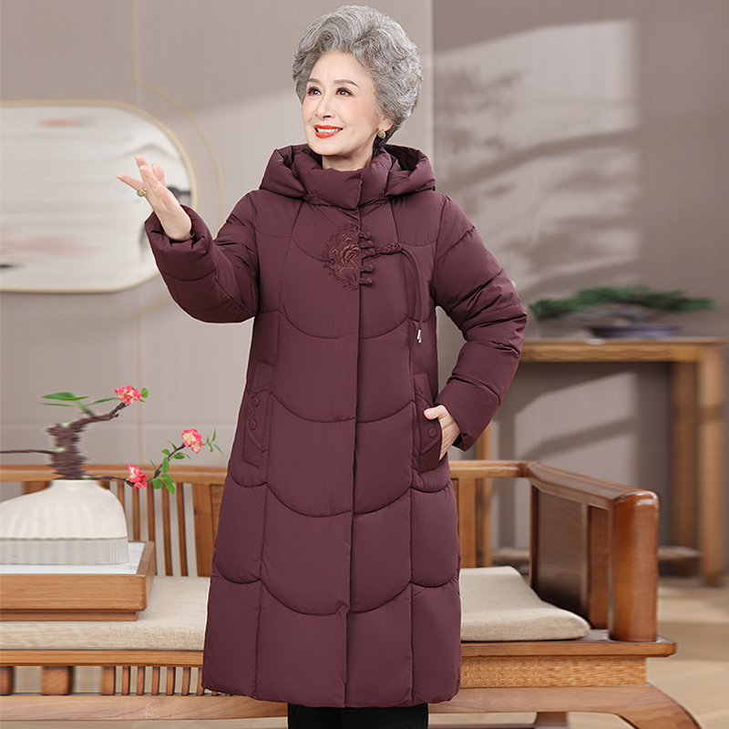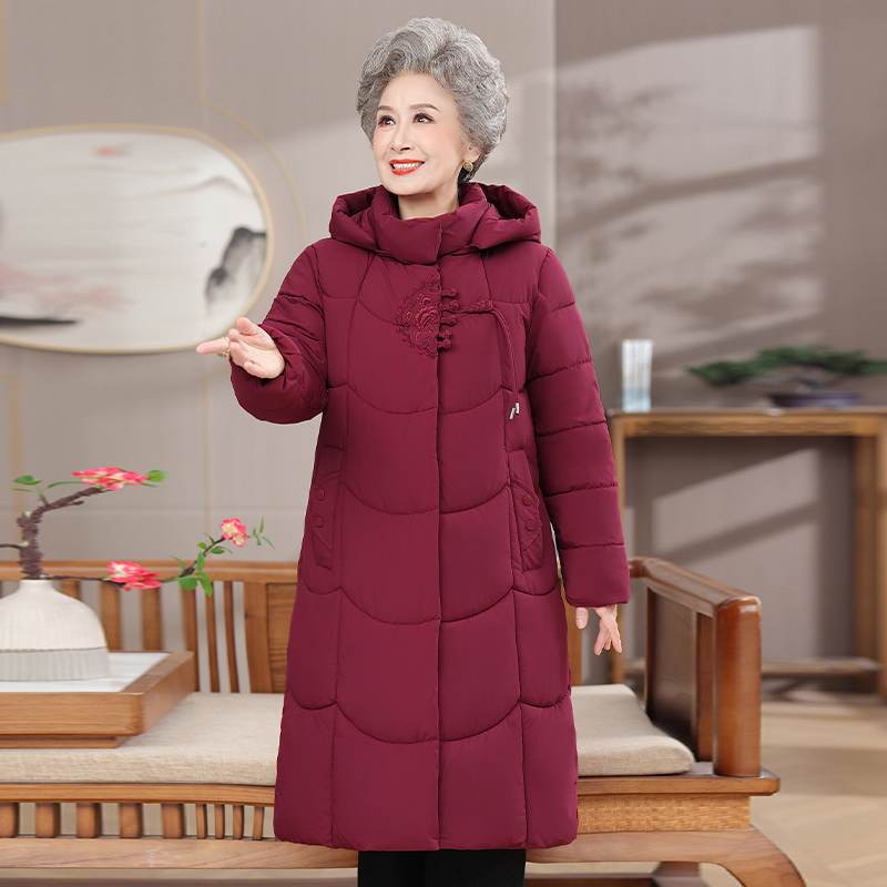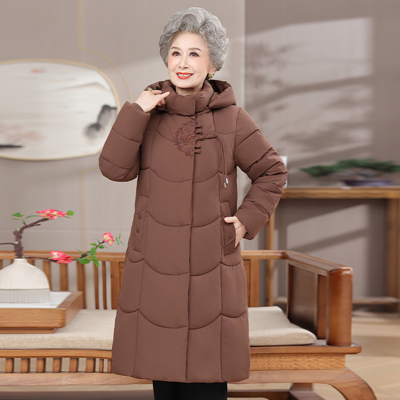 妈妈冬装羽绒棉服过膝长款中老年棉袄冬季气质保暖外套女奶奶棉衣