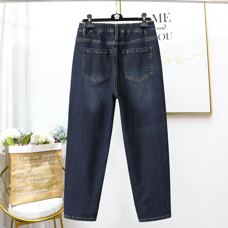 大码牛仔裤女胖mm高腰弹力哈伦裤小直筒裤复古显瘦时尚2023春秋款