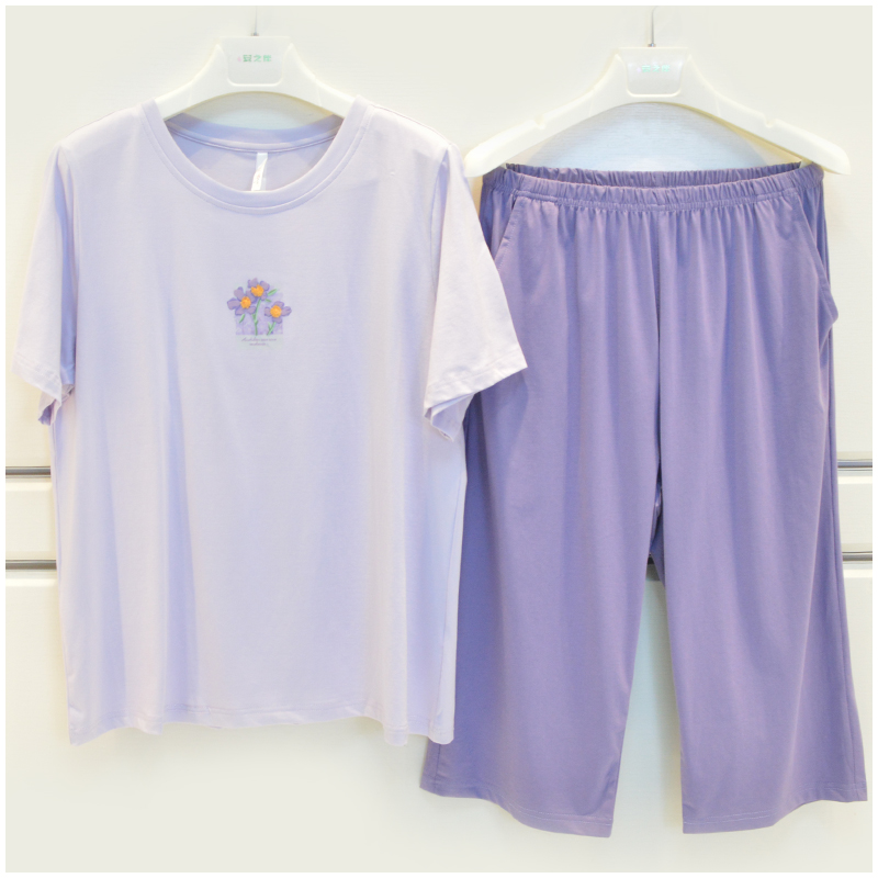 妮可雅睡衣女2024夏季新品针织纯棉学生款休闲短袖七分裤家居服套