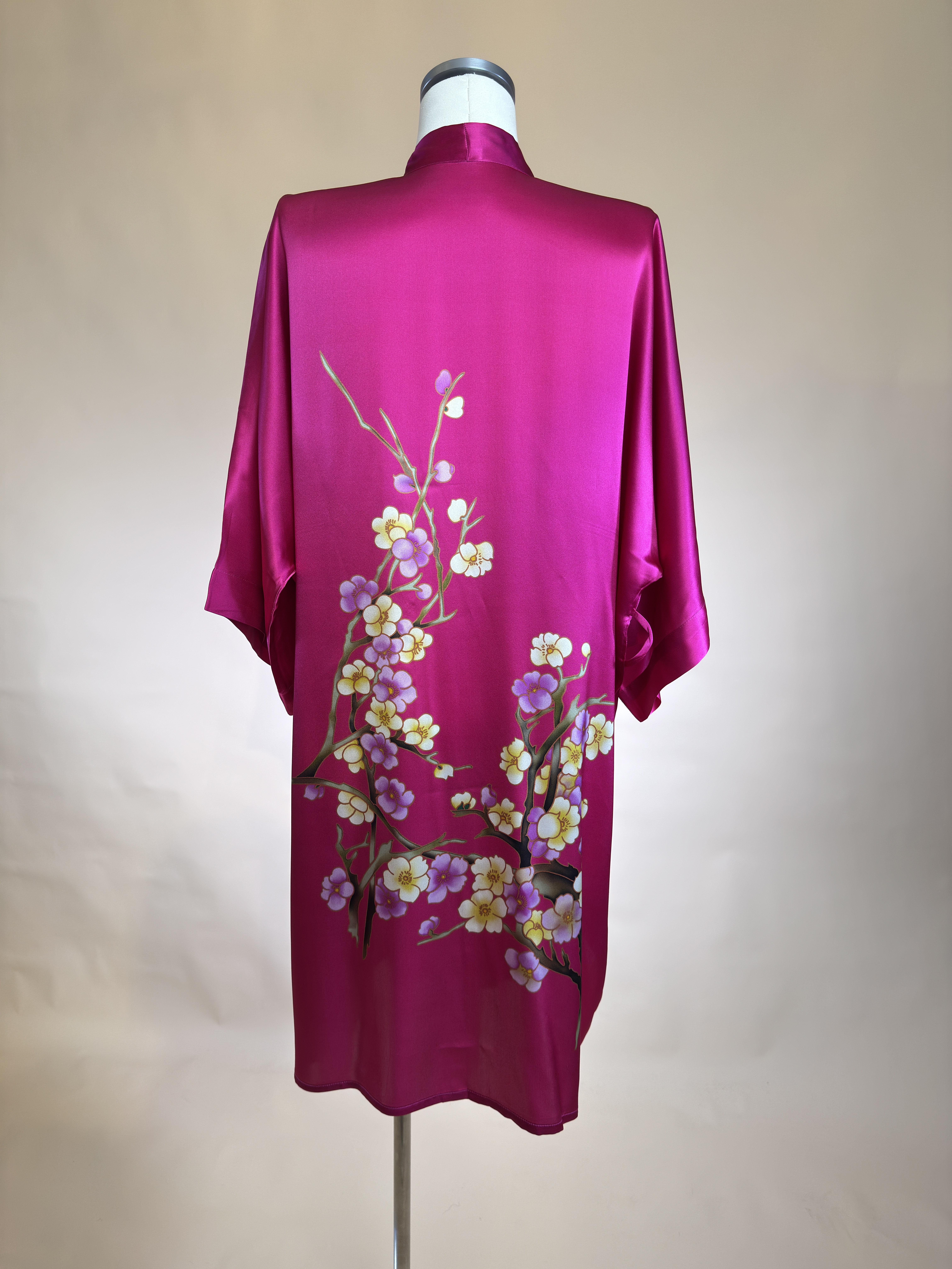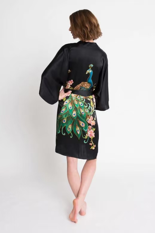 大码纯真丝睡袍女士100%桑蚕丝短款睡衣丝绸家居服silk汉服和服