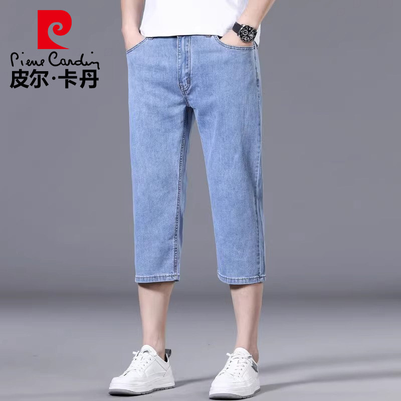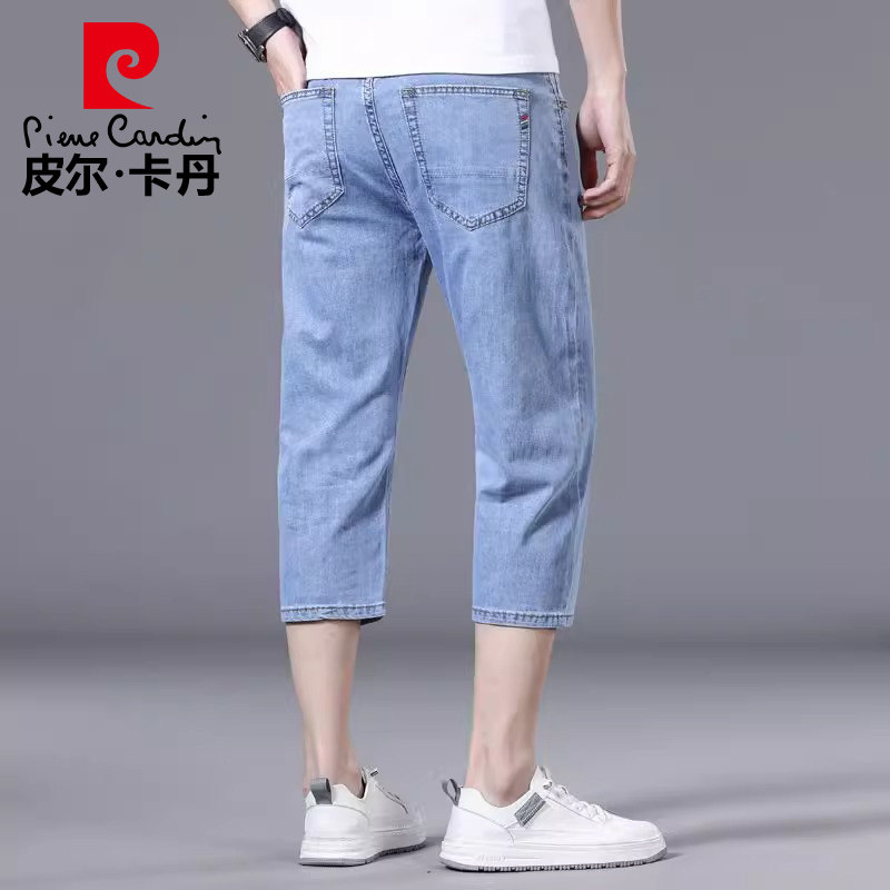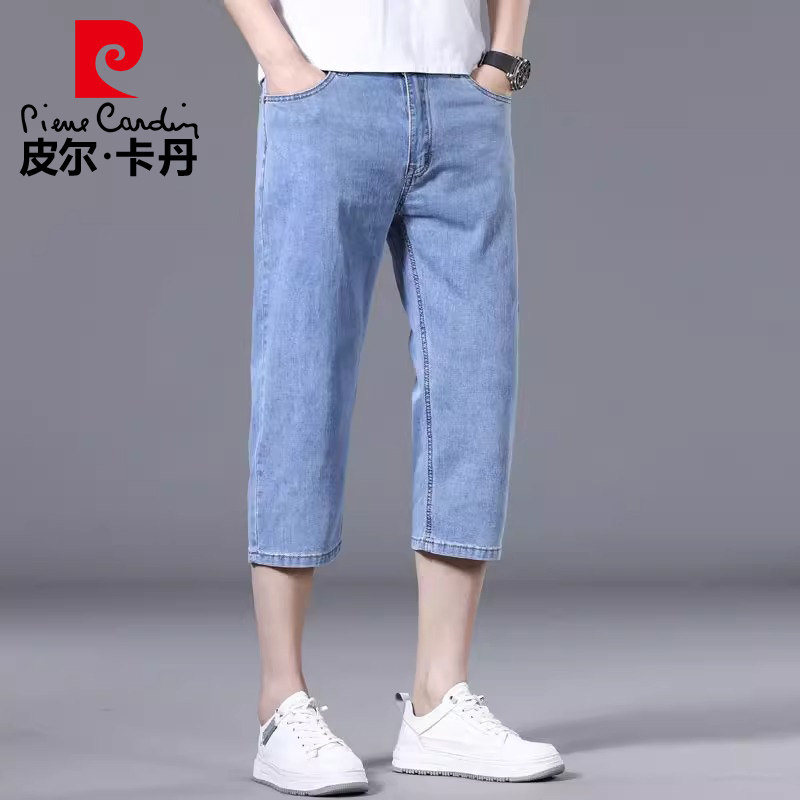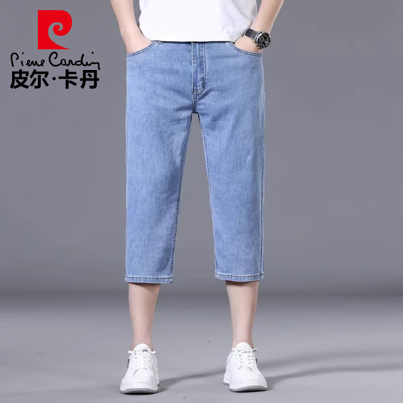 皮尔卡丹夏季冰丝七分牛仔短裤男
