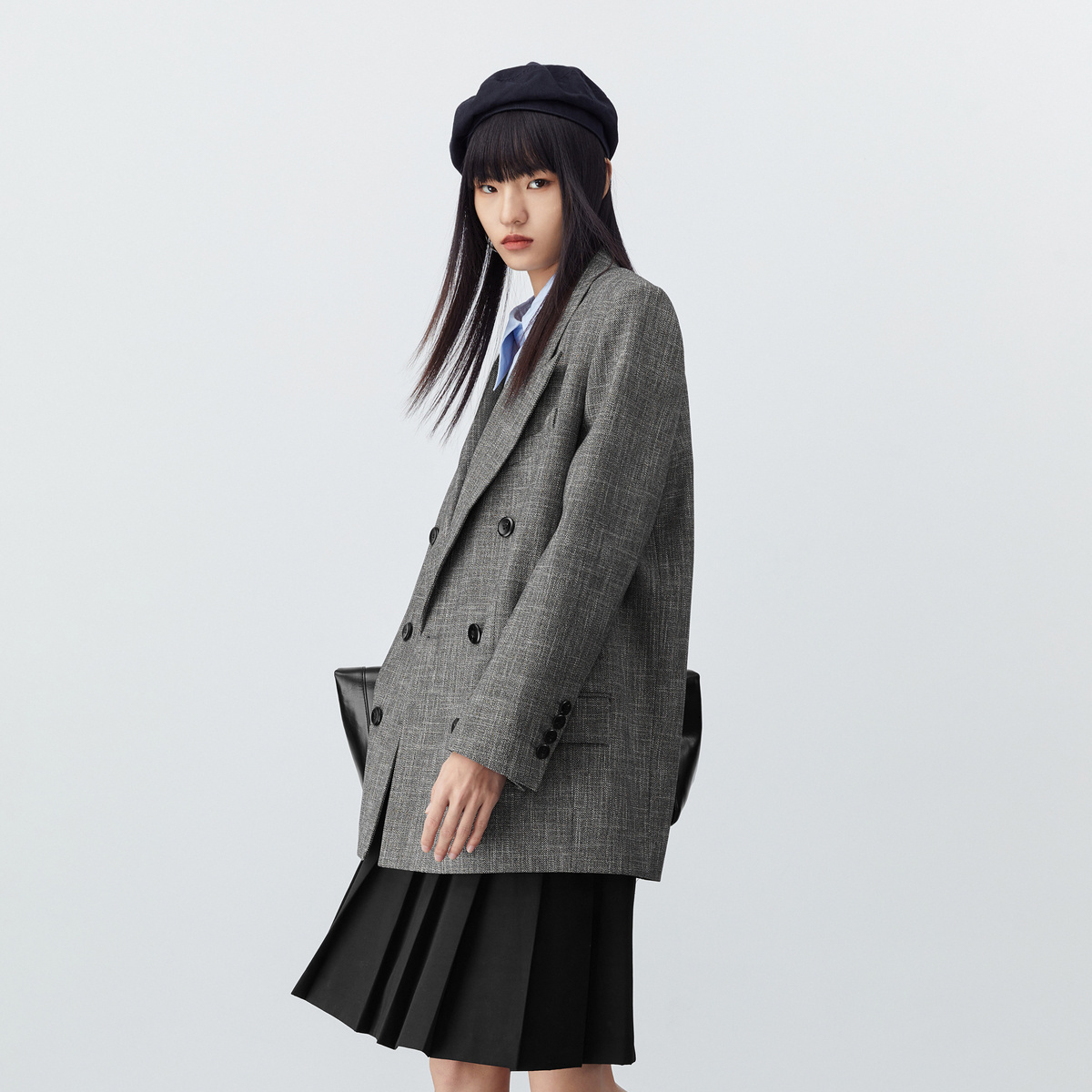 太平鸟廓形西装外套女2023春季女士复古西装外套高级感灰色