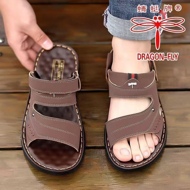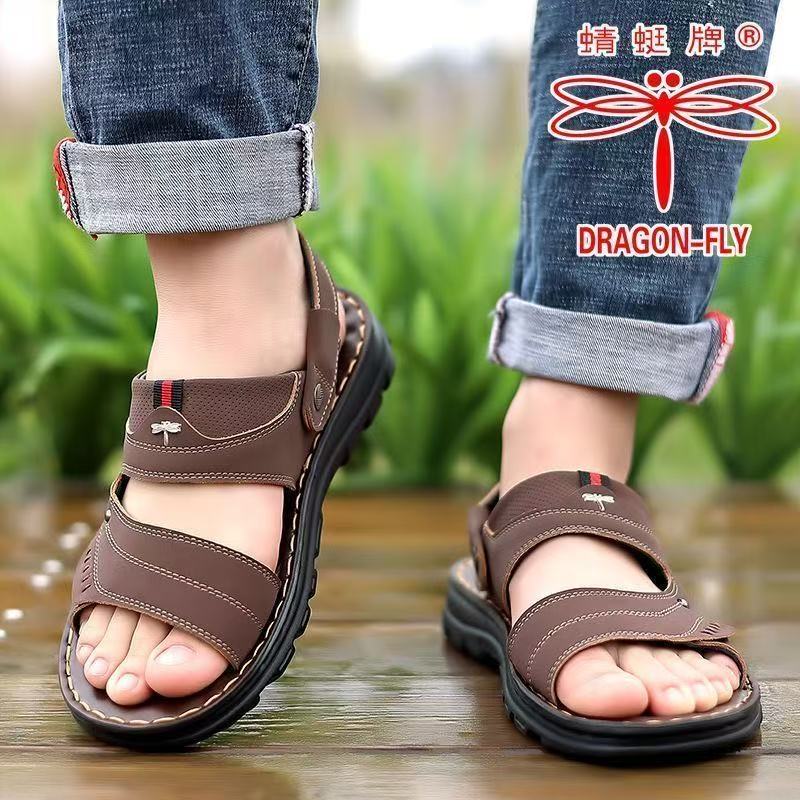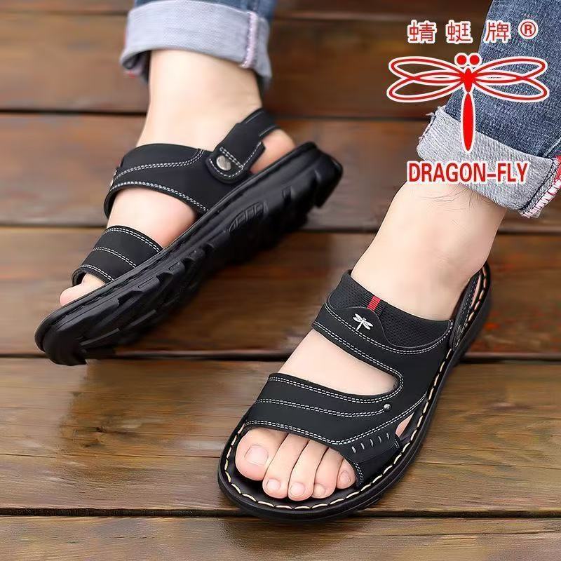 蜻蜓牌凉鞋男夏季新款真皮休闲软底防滑沙滩鞋耐磨透气牛皮凉皮鞋