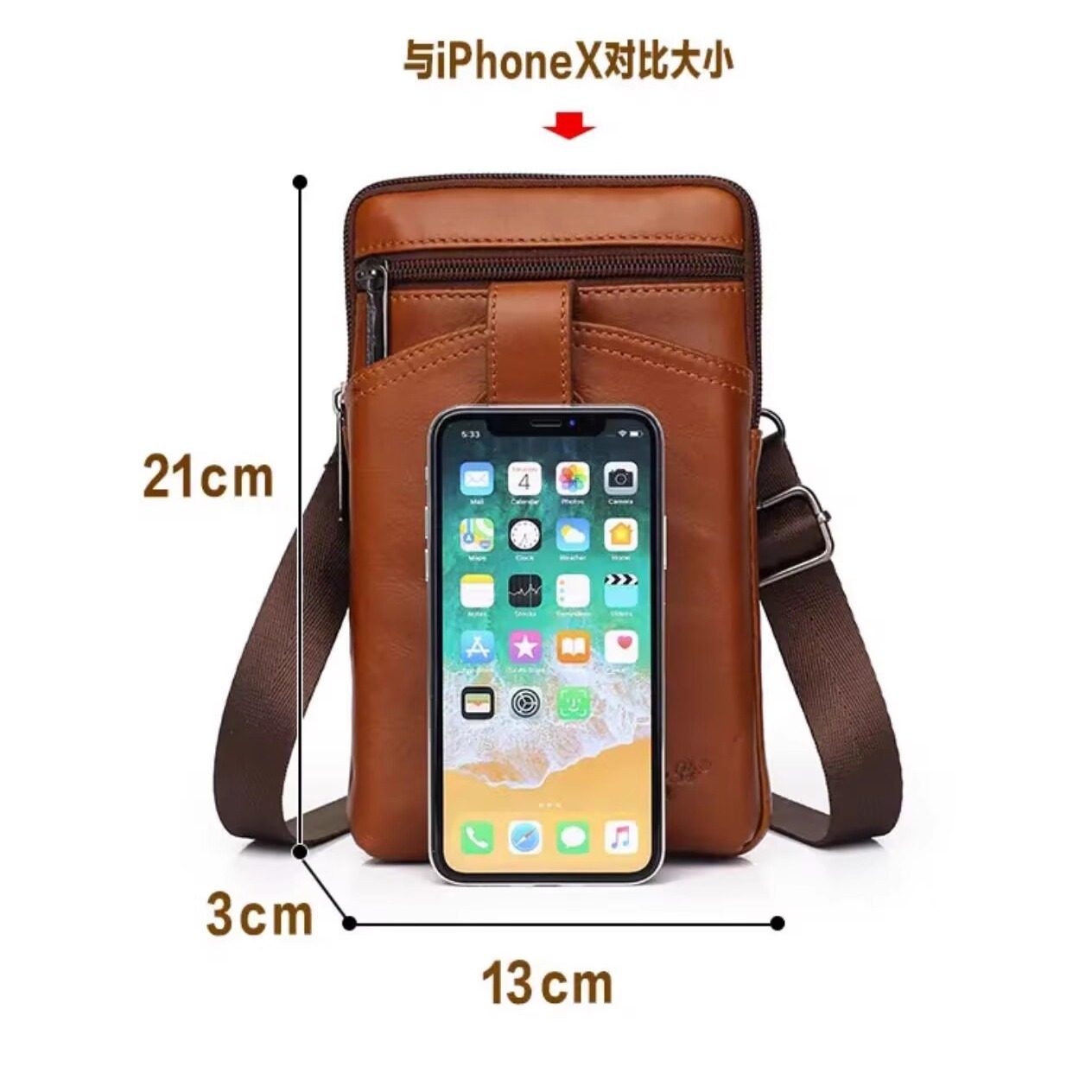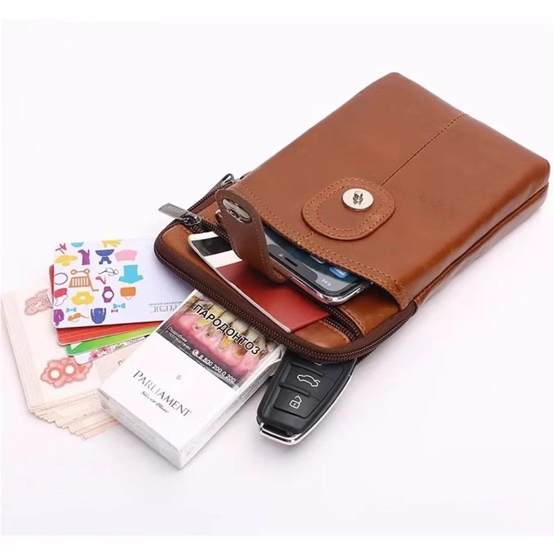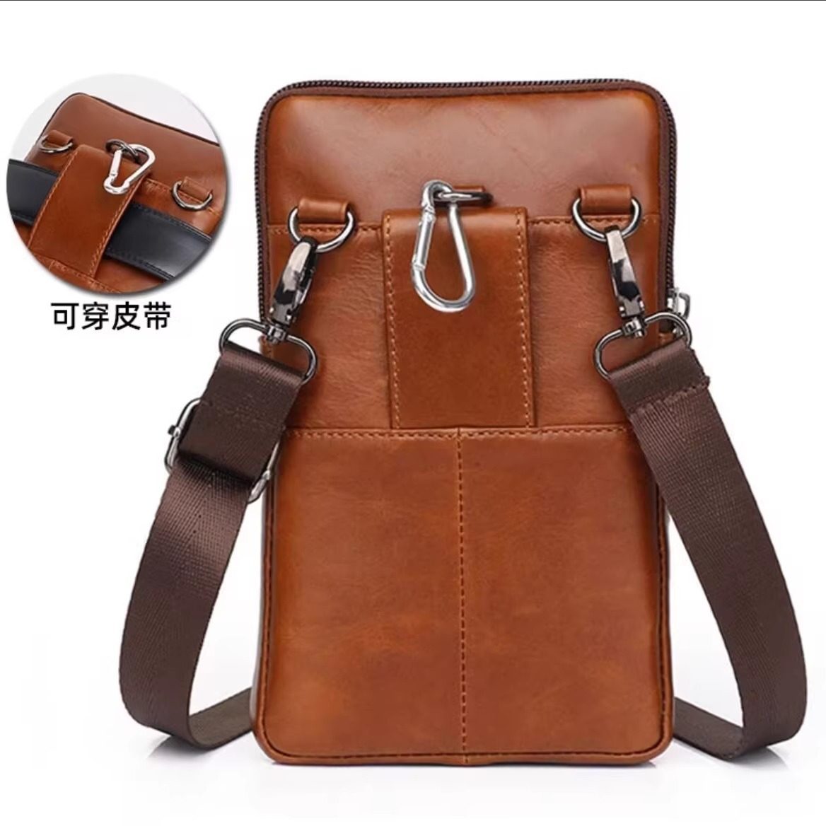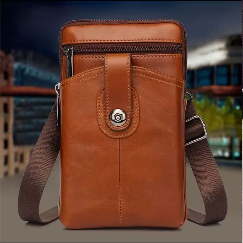 男士斜挎包单肩包男手机包头层牛皮商务时尚青年穿皮带腰间小挂包