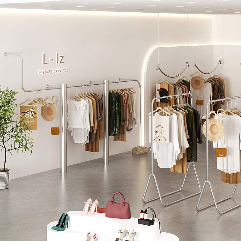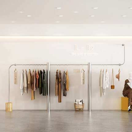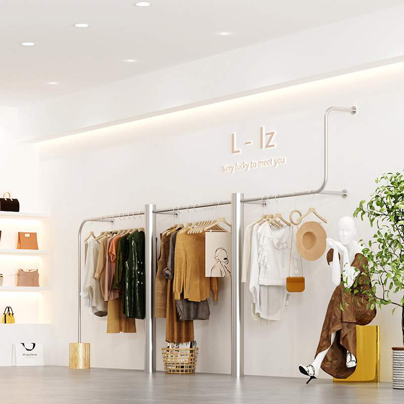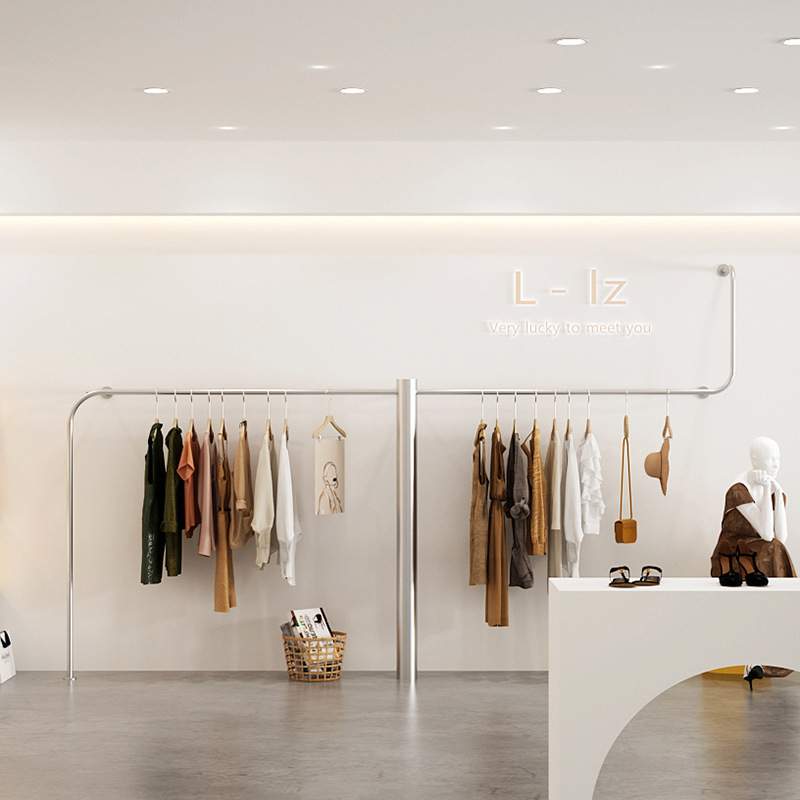 服装店展示架上墙不锈钢挂衣架女装货架陈列道具网红陈列架挂衣杆